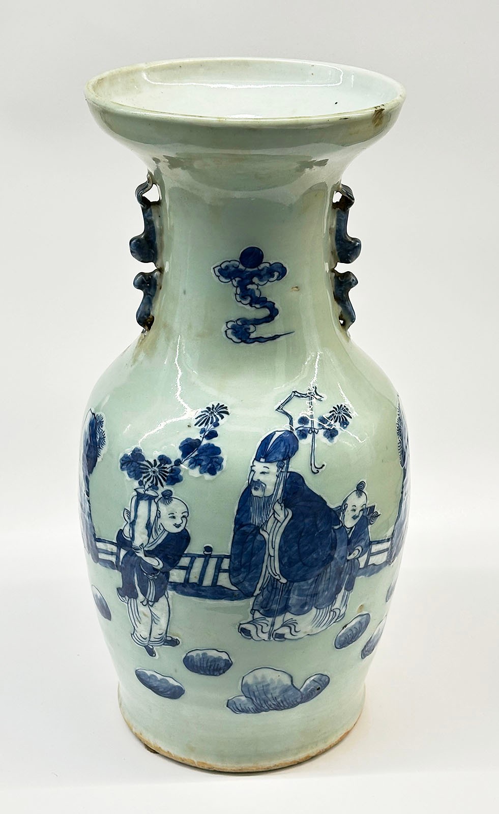 Antique Chinese Porcelain Celadon Vase. Early 20th C. In Good Condition with no chips or cracks. 16.5" tall, 8" in diameter.
