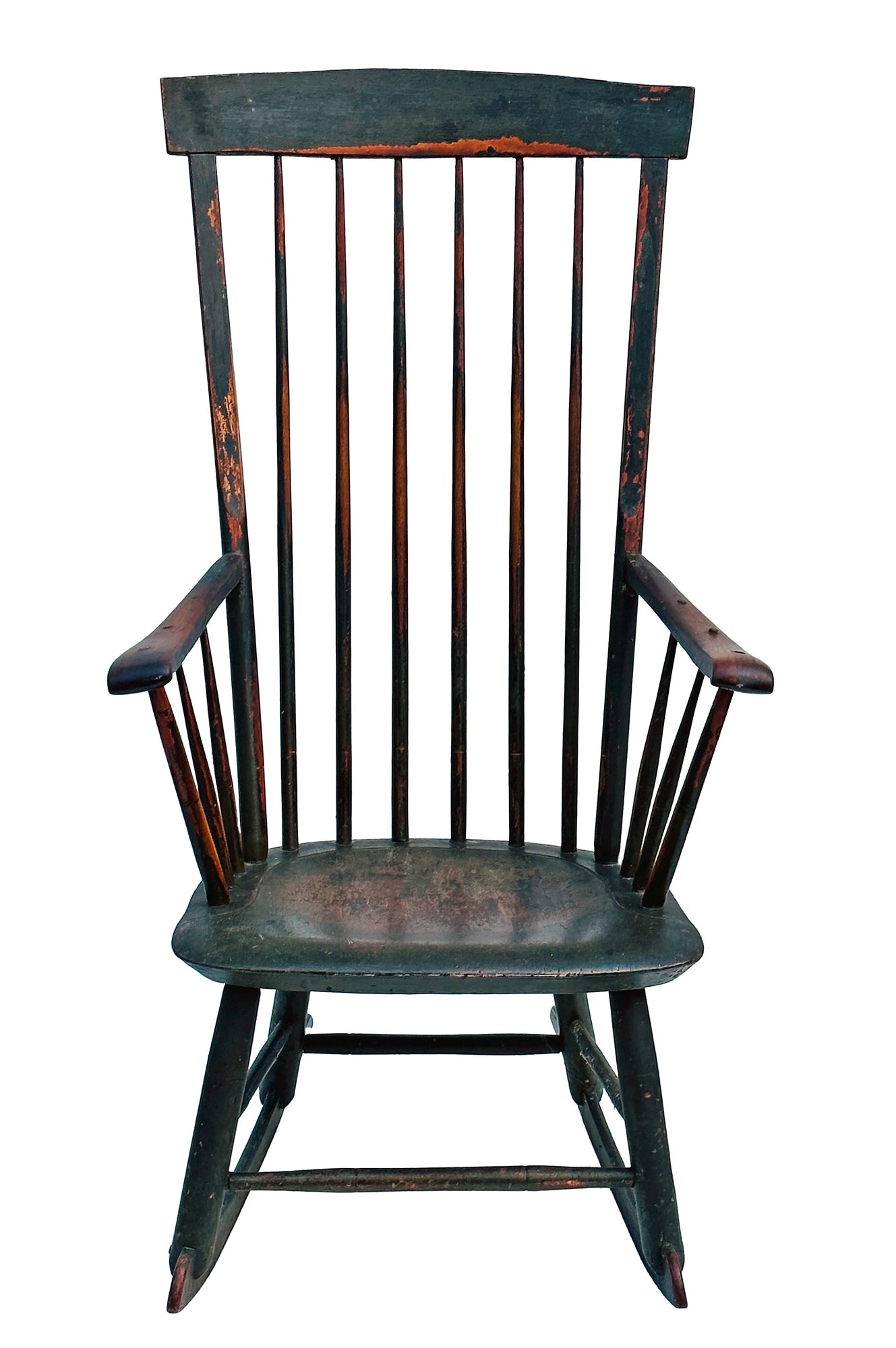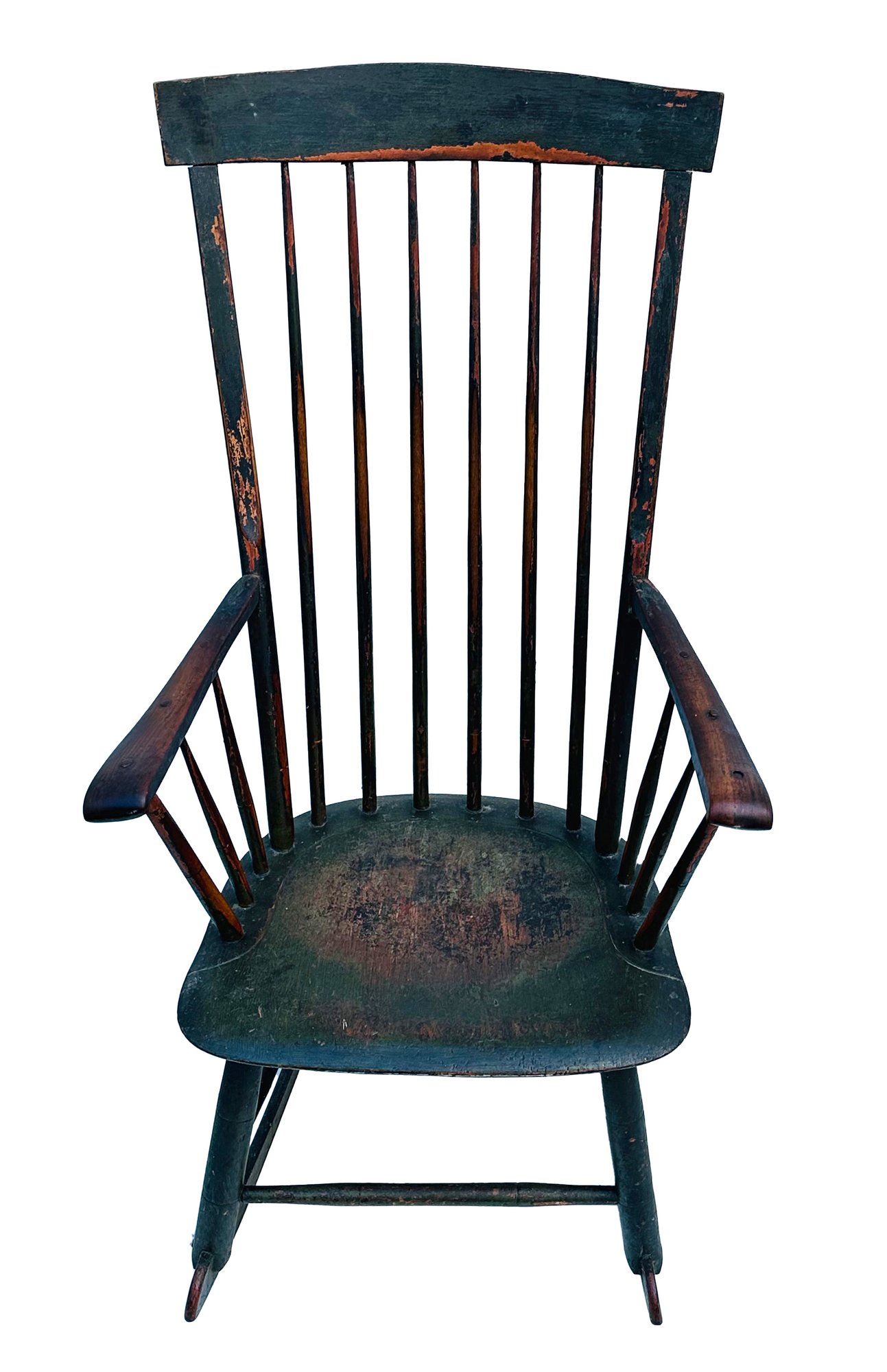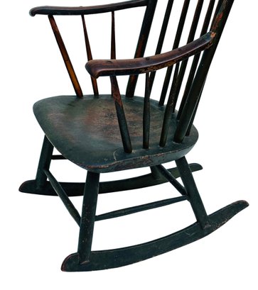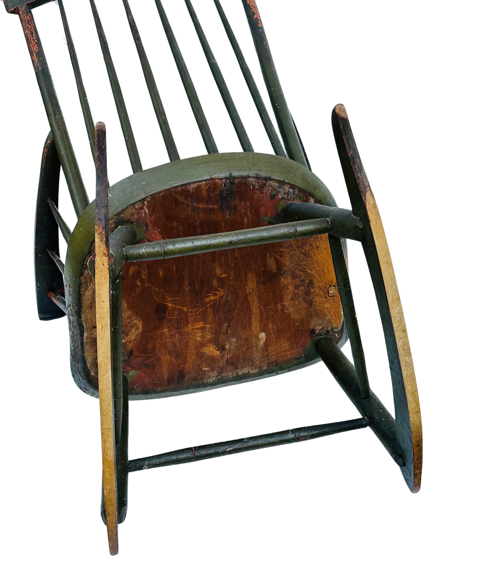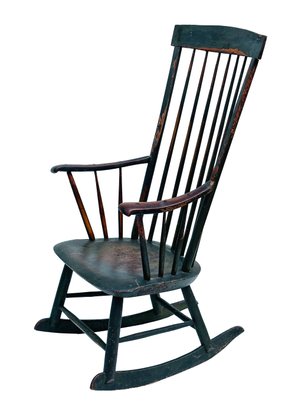 Antique Early American Painted Windsor Rocking Chair. Circa Mid-19th C. In good condition with some paint loss from age and use which adds to its charm. 24" x 22" x 44.5"h, 16" seat height