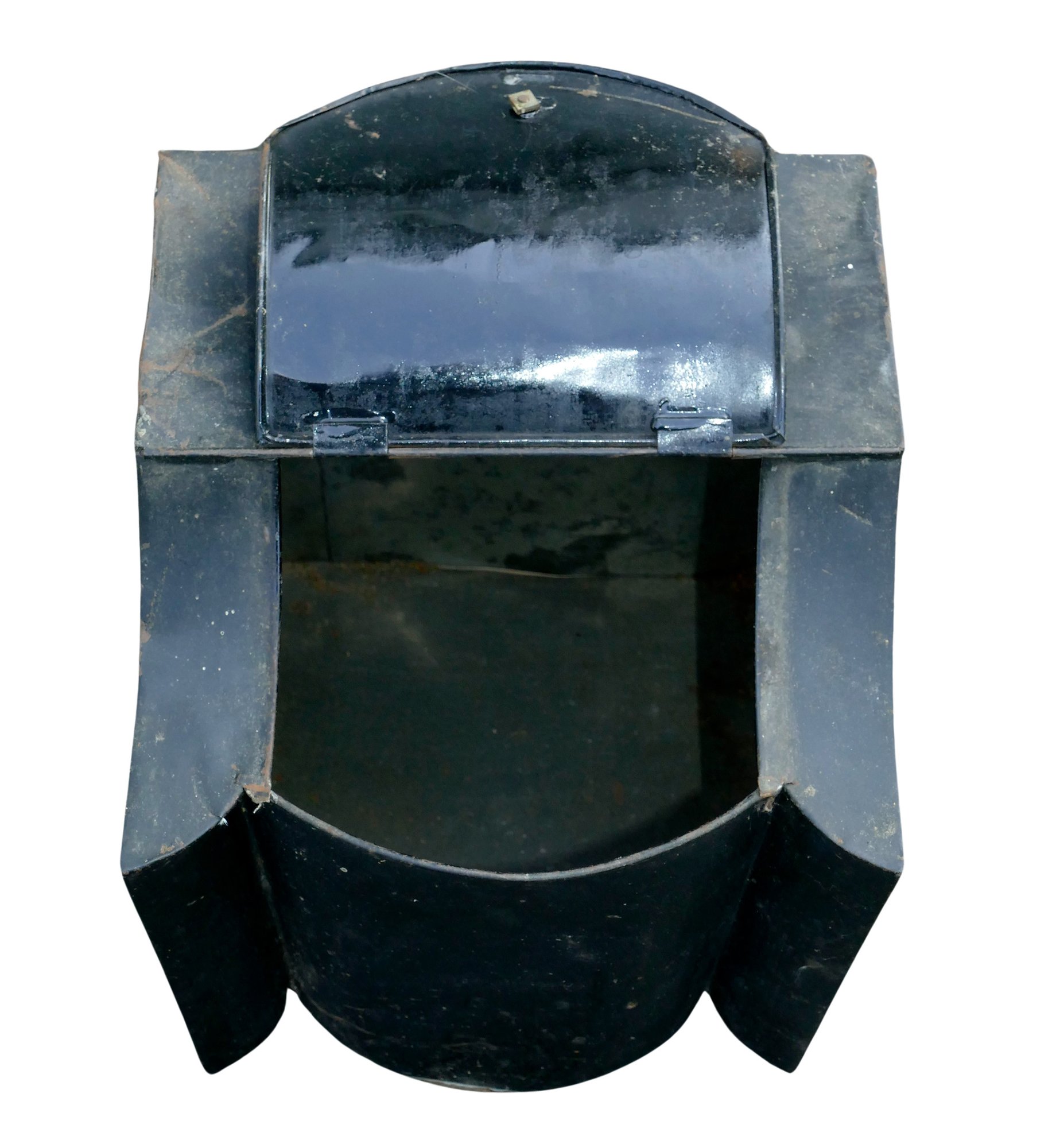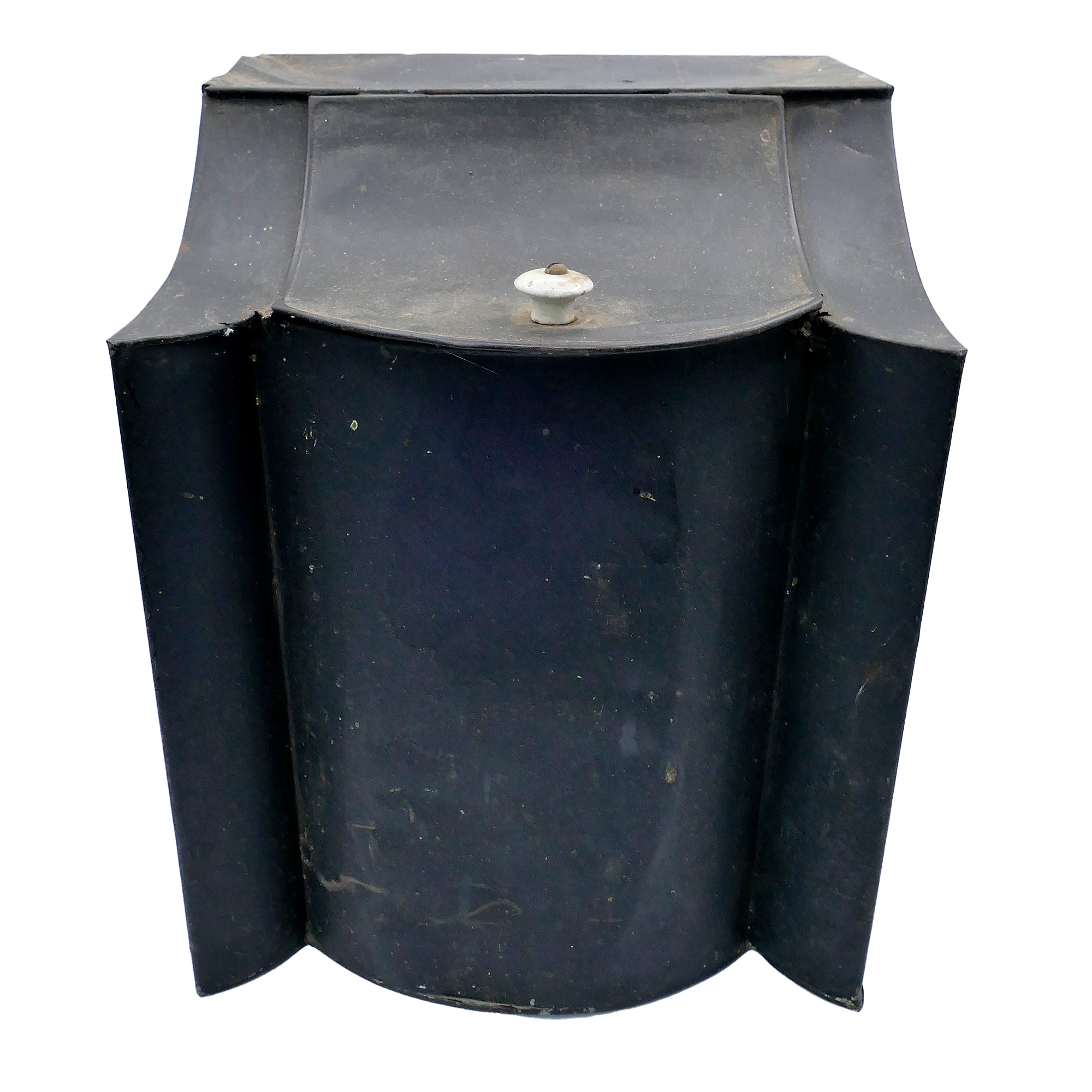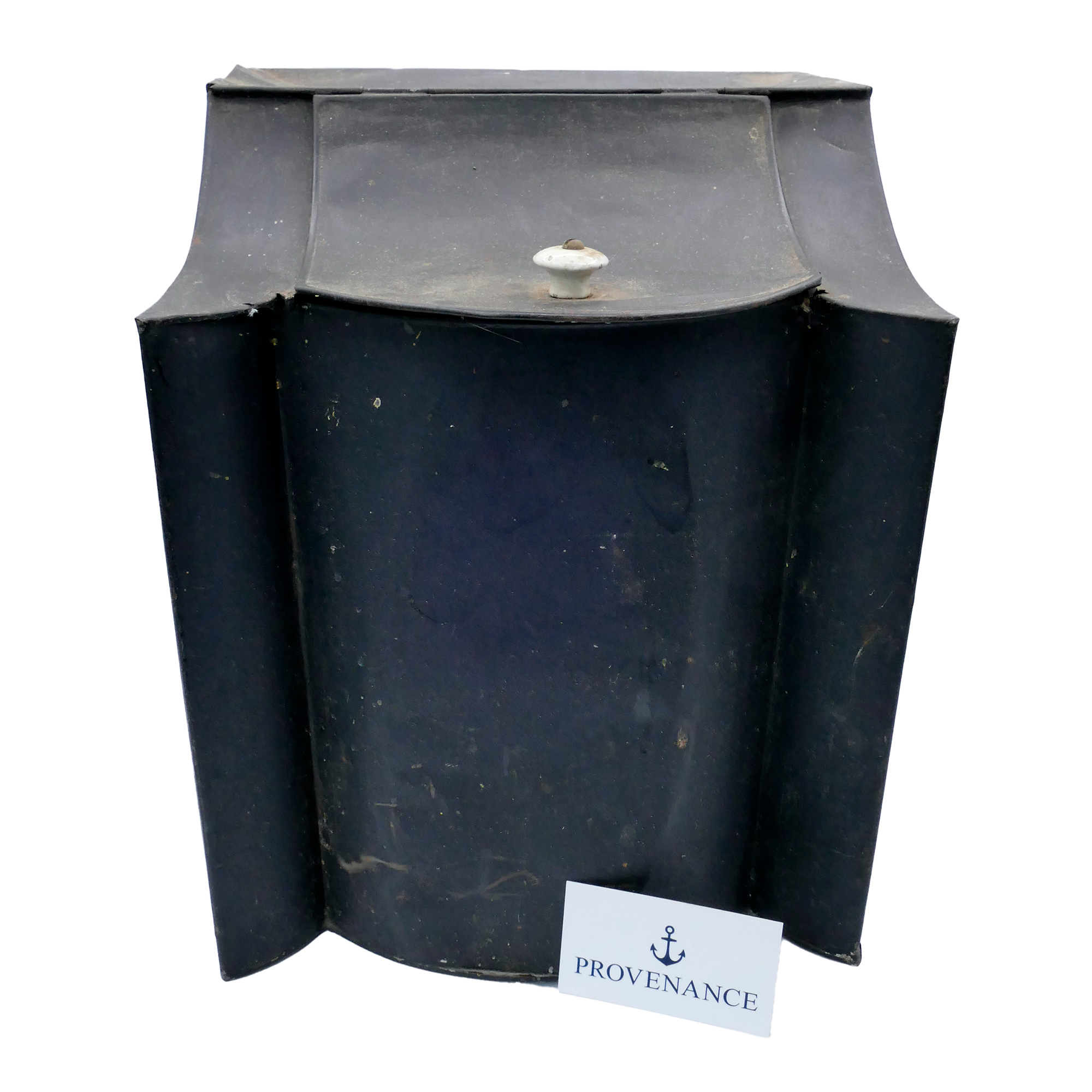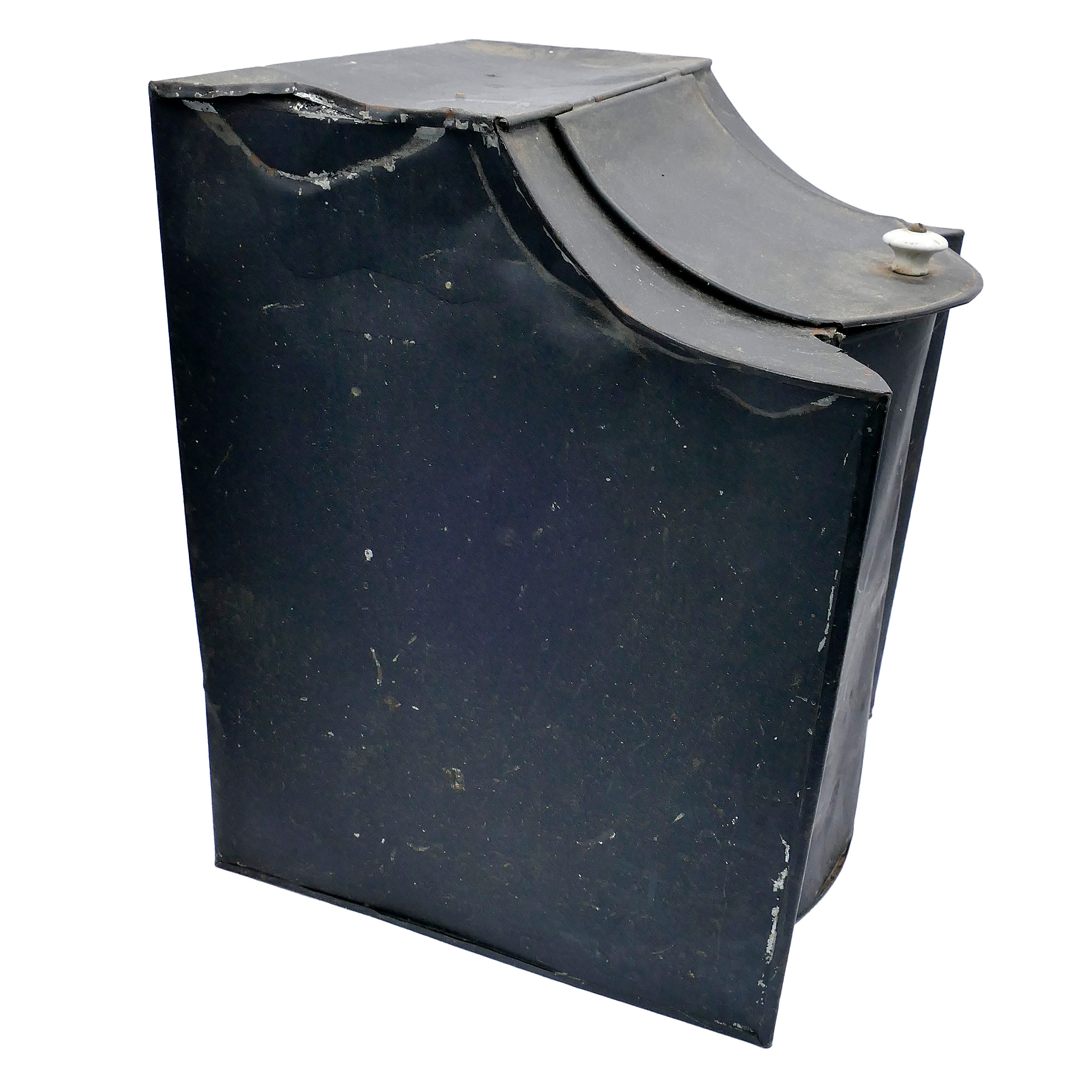 Antique General Store Counter Tin Bin. In Black. 11" x 11.5" x 14"h. In good condition with some wear . Great display piece.
