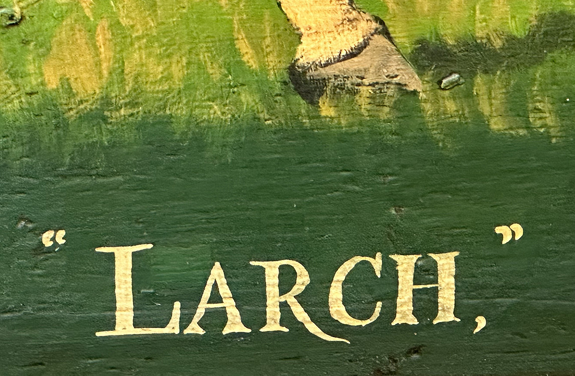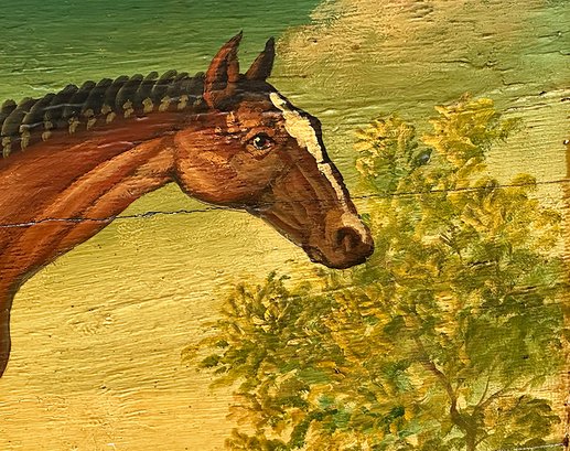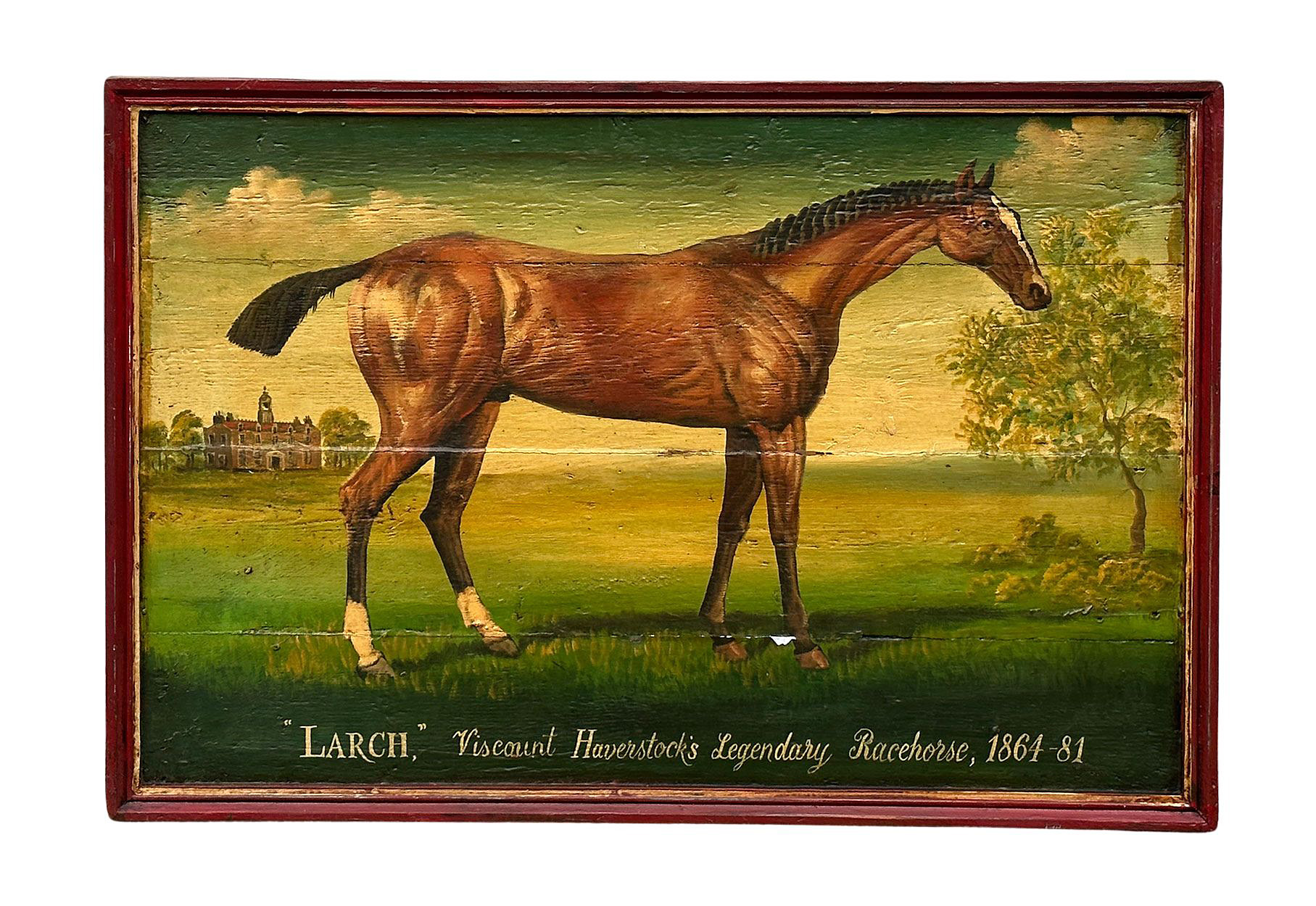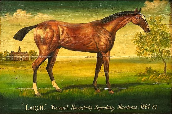 Antique Original Painting On Wood Panel - "Larch" Viscount Haverstock's Legendary Racehorse, 1864-81. British School, Early 20th C. In good condition with a couple areas of paint loss. 24" x 36"