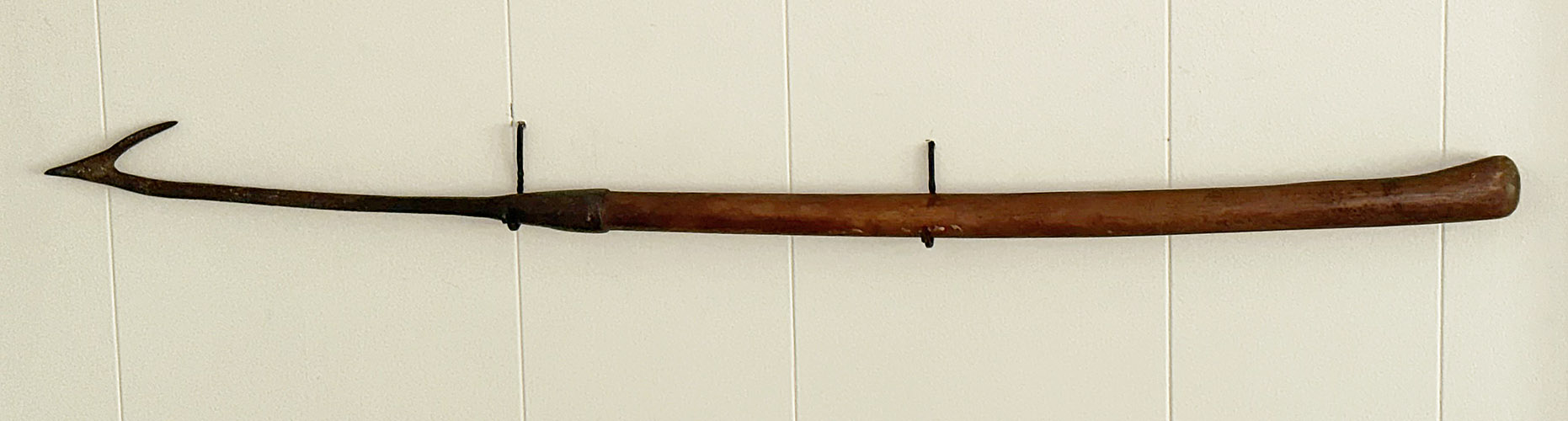Antique Wrought Iron & Wood Whaling Nautical Harpoon. Initialed in the handle by the the original owner or maker. Great decor piece for the beach house. 36" Long.