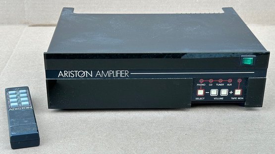 Ariston Audiophile Intergrated Stereo Amplifier. Made In Scotland, Circa 1980's. With Remote. We're told this has 40 watts per channel but cannot verify. Untested. The remote is missing the back cover.