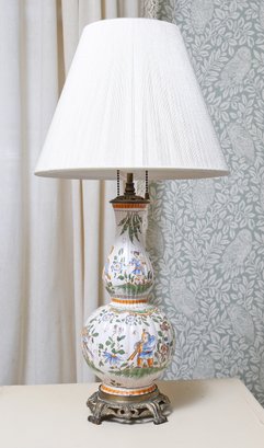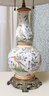 Asian Floral And Birds Porcelain Gourd Lamp. In Very Good Condition. 25.5" Tall.