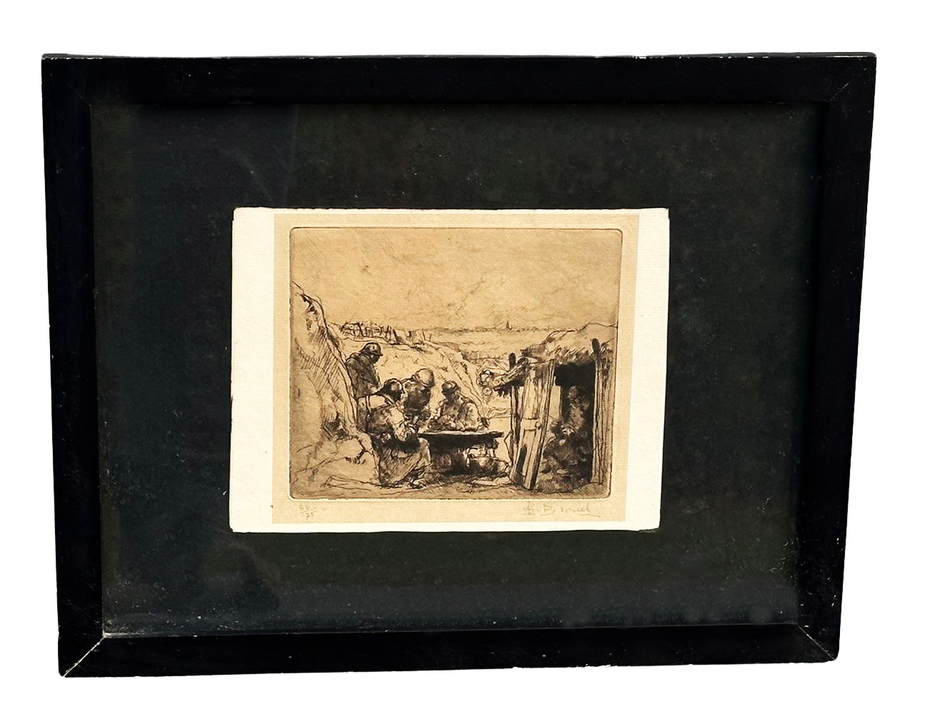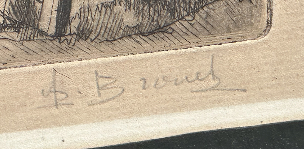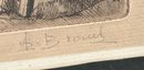 Auguste Brouet (1872-1941) Dry Point Etching. Circa Early 20th C. Signed and numbered in pencil by the artist. In Very Good Condition. Frame is in poor condition. Paper Size: 8" x 10.5"