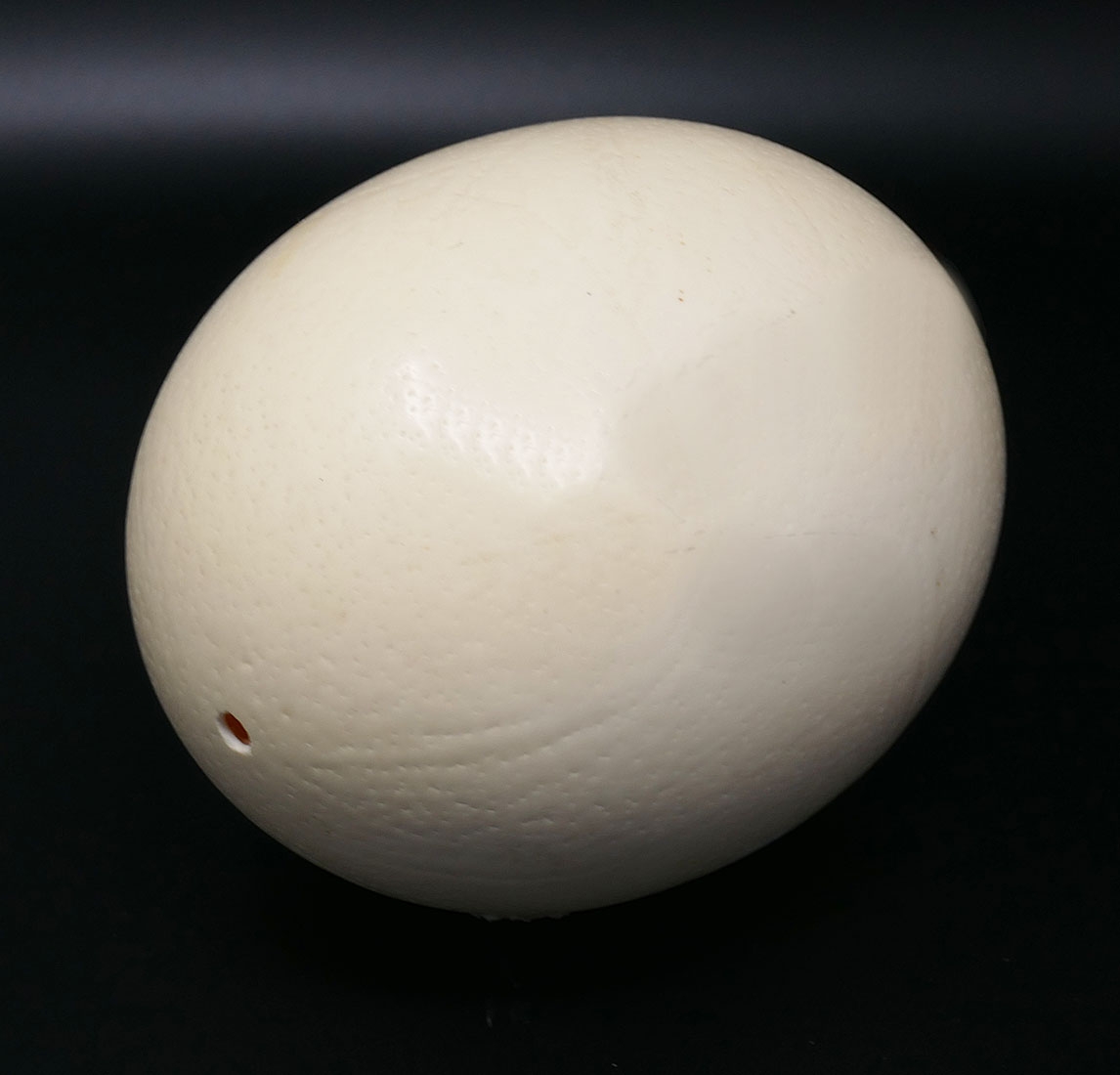 Authentic Ostrich Egg. 6" high x 4.5" diameter. No cracks, some marks and tape residue.