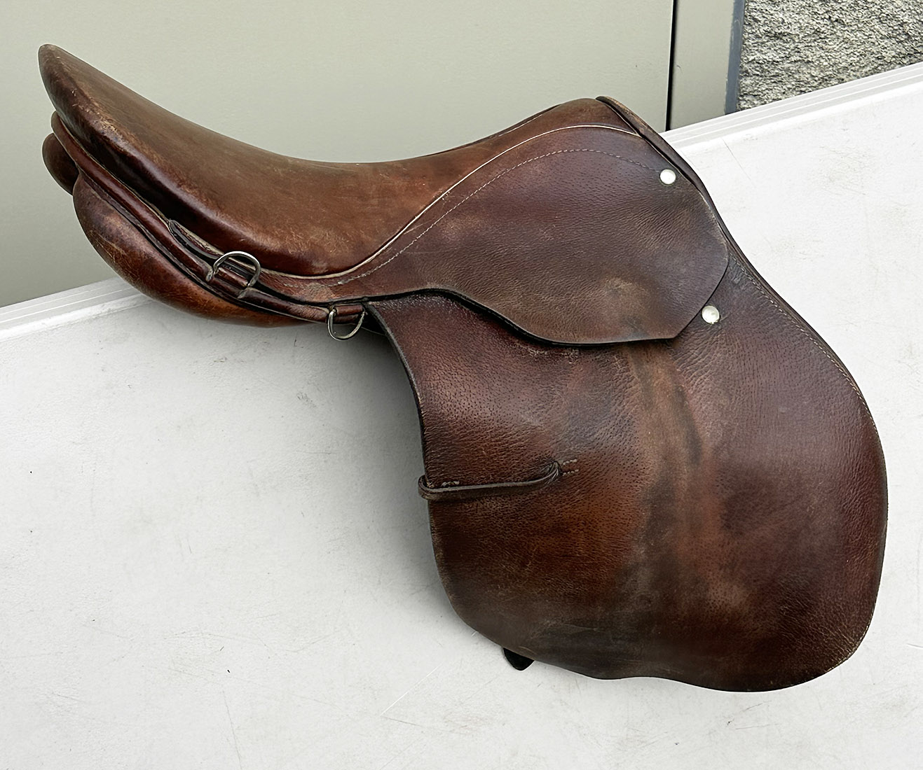B. T. Crump "Prix De Saute" Close Contact 18" Saddle. Wear and tear.