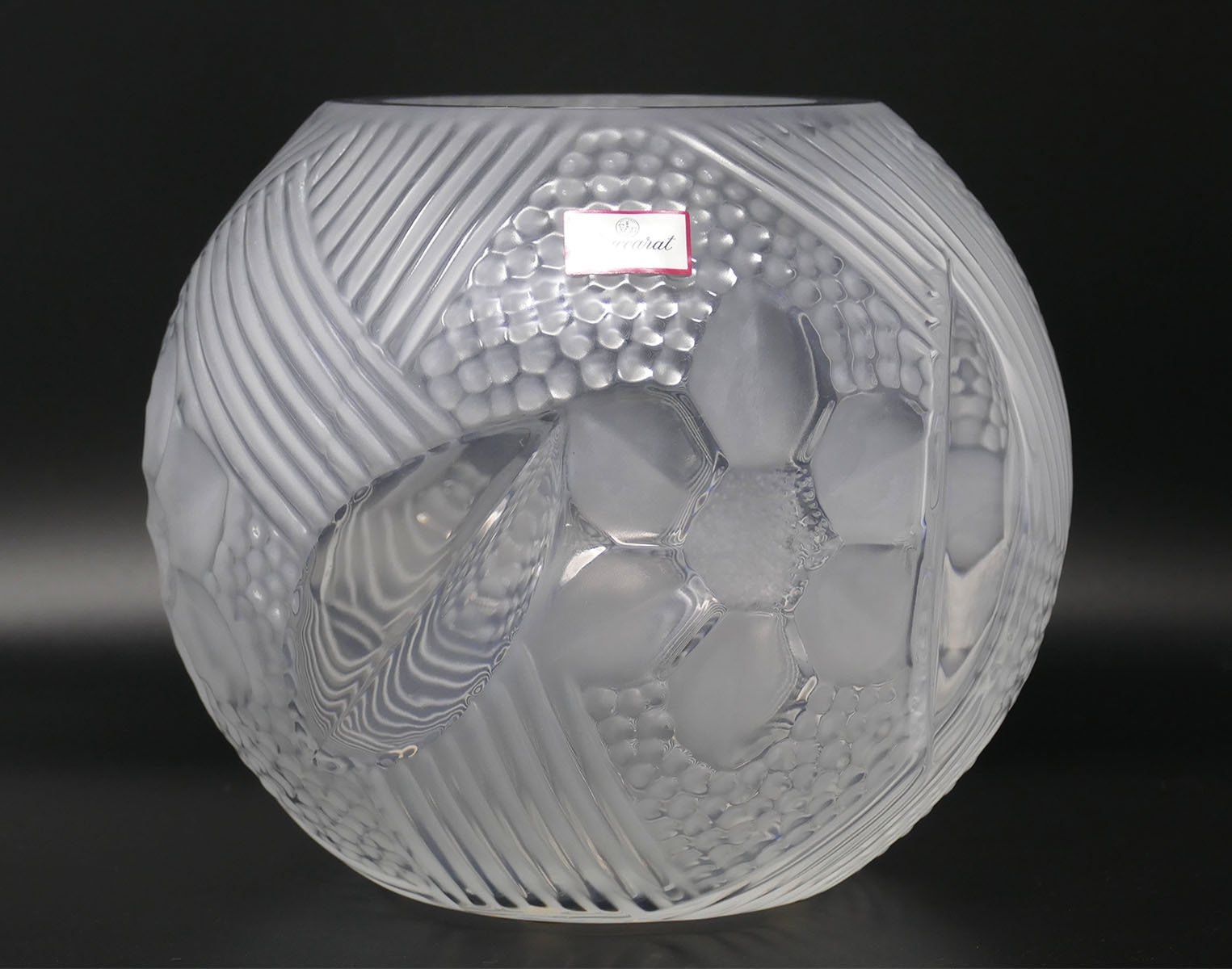Baccarat Crystal Florelia Round Vase. 8" Diameter. This was a floor display at Baccarat in NYC and is in Excellent Condition with the sticker still attached. Stamped on the base. Makes a great holiday gift. Comes in the original box. The box has some wear and tear from storage. The original MSRP was approximately $1500.