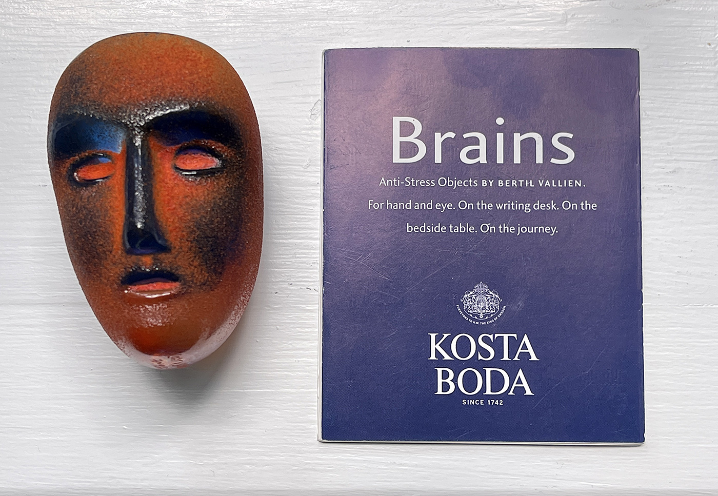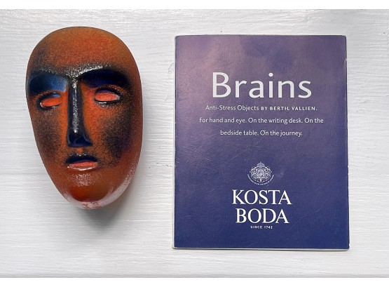 Bertil Vallien's Brain Series Art Glass For Kosta Boda - Cesare. Handmade in blue glass with orange overshot. Signed on the base. With documentation.