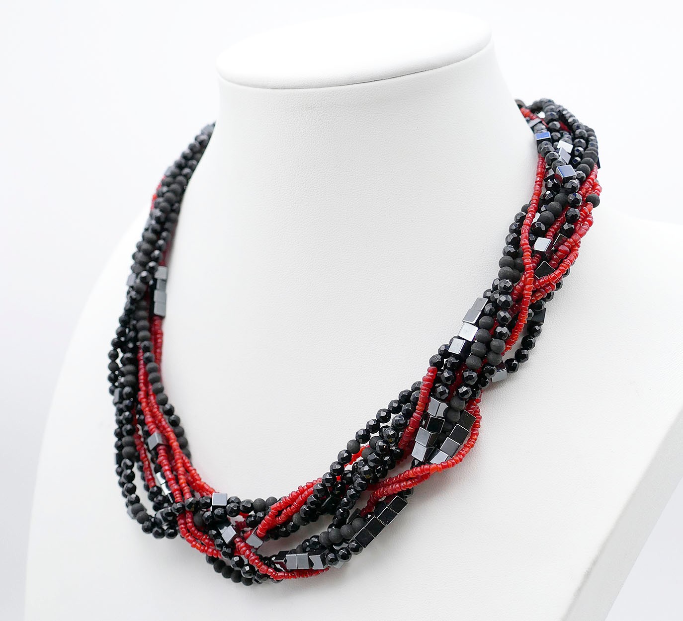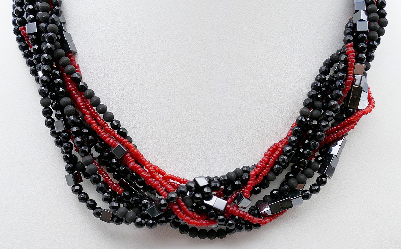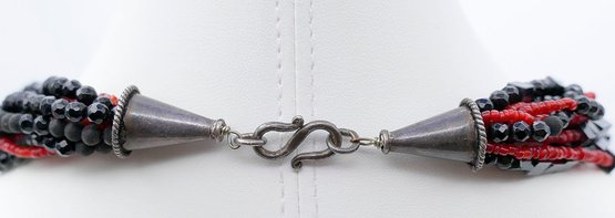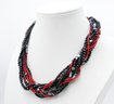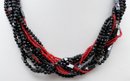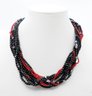 Black & Red Multi-Strand Beaded Modern Necklace. 18" Long. In Very Good Condition.