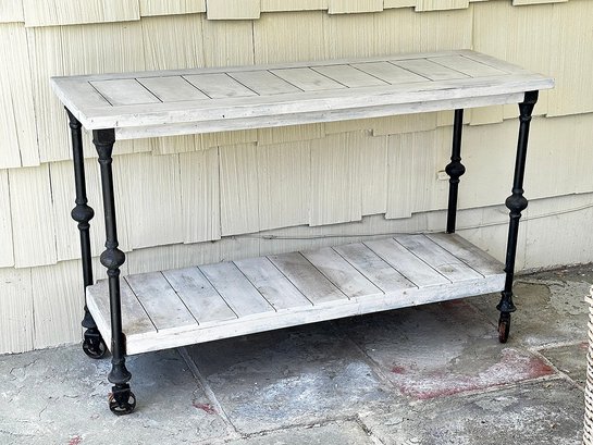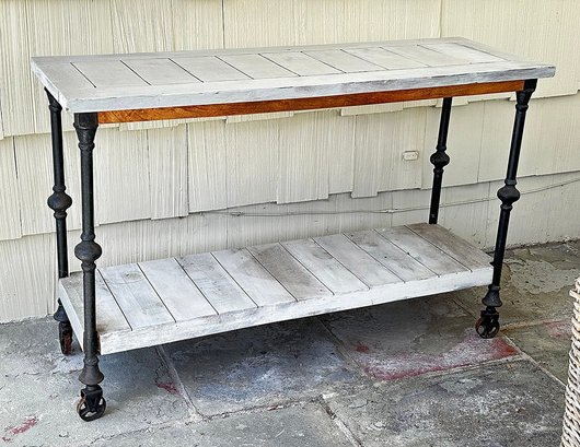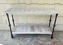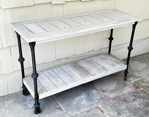 Butler Fontainebleau Industrial Chic Console Table. Painted, one small part has not been painted and shows the original natural wood color. 47"w x 16"d x 35"h