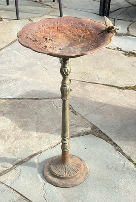 Cast Iron Bird Bath. 28" Tall. In good condition with some rusting.