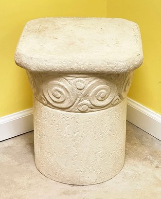 Cast Stone Garden Column Plinth / Stool / Side Table. Hollow construction. In Very Good Condition. 15" x 15" x 18" tall