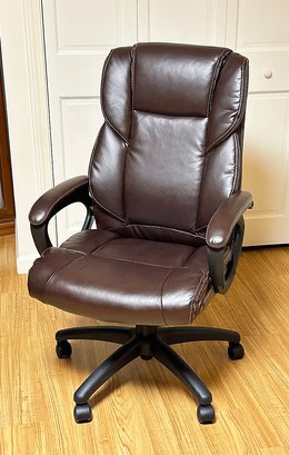 Nice Adjustable Faux Leather High Back Office Chair. In Brown. Rarely Used; in Very Good Condition. 25"w x 43"h.