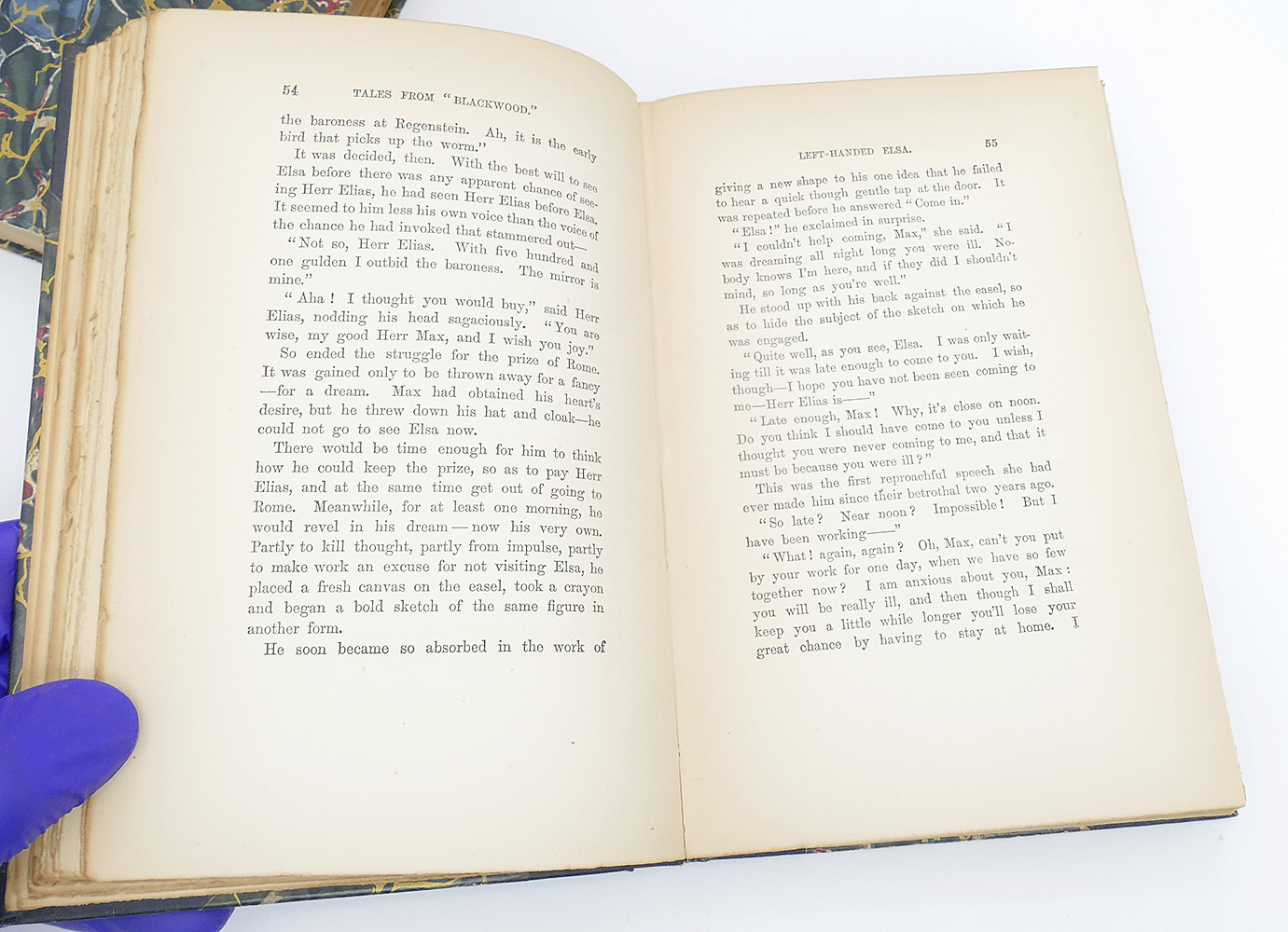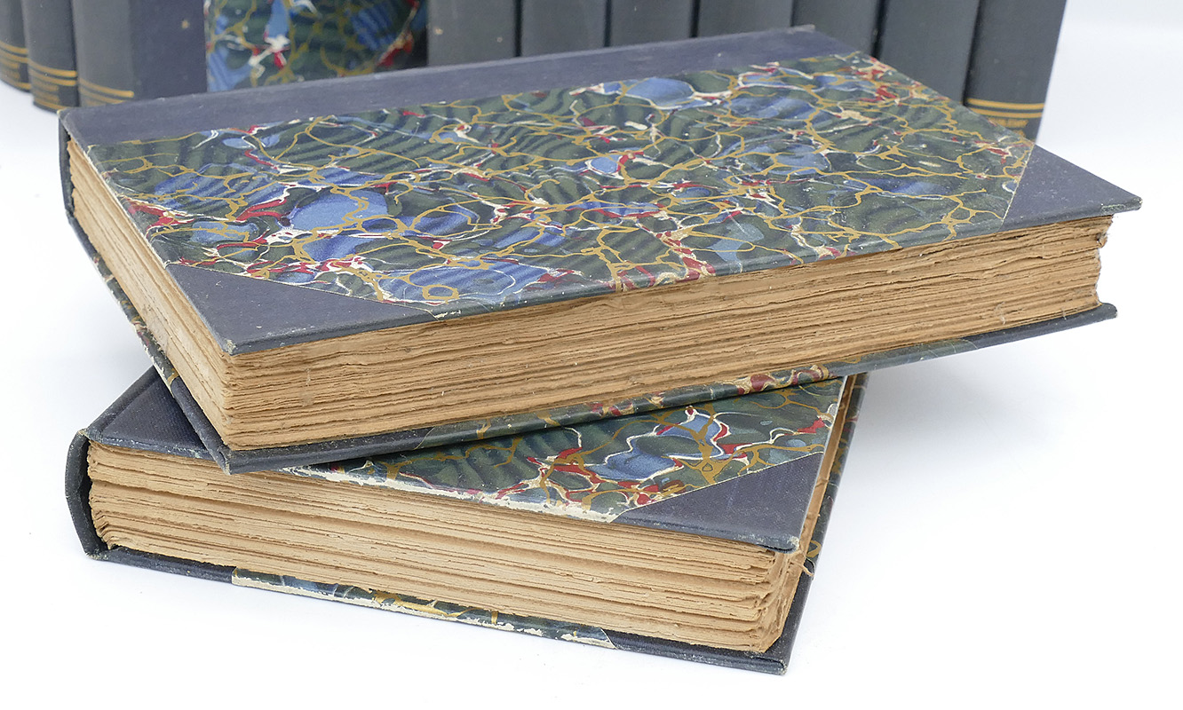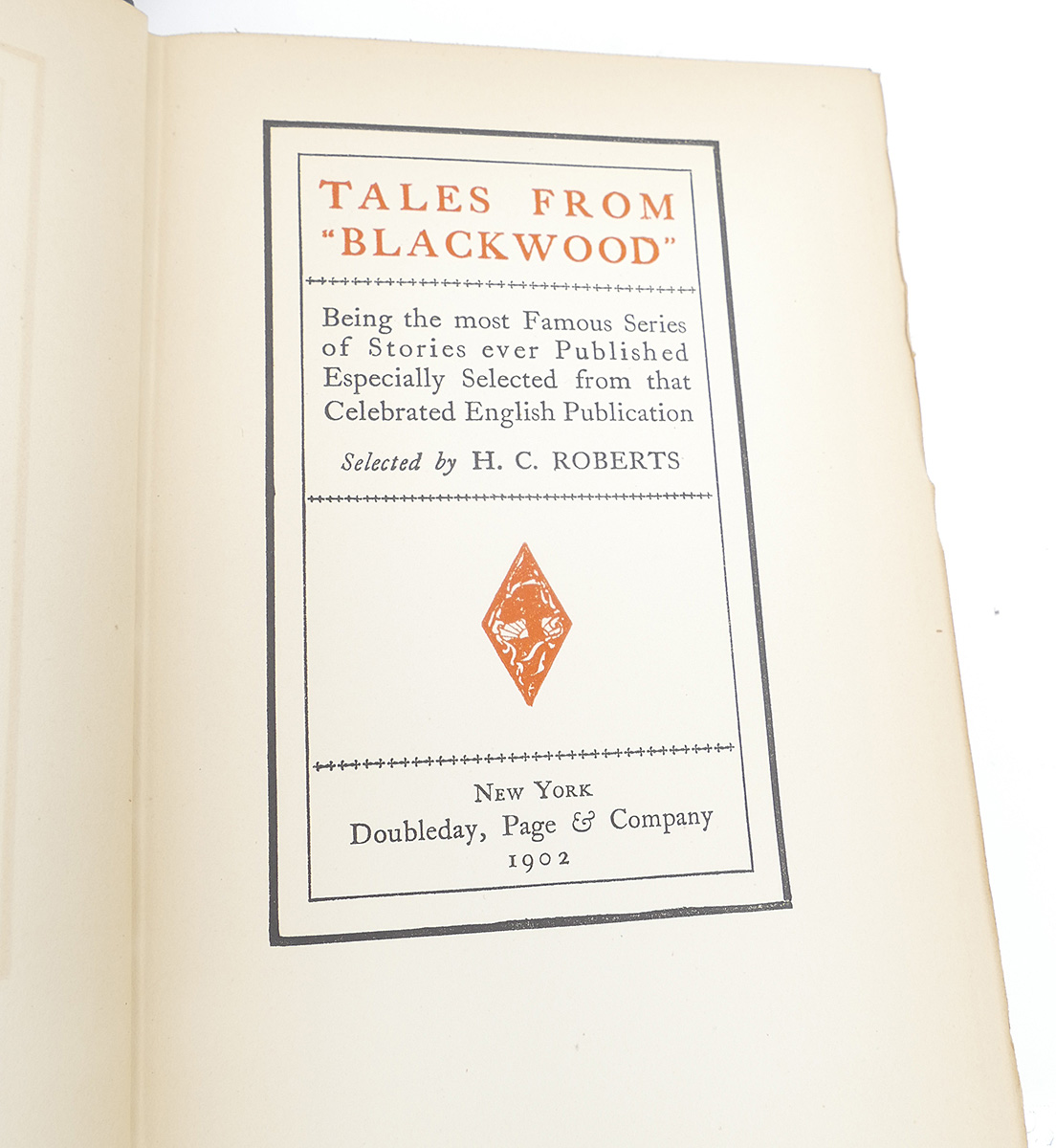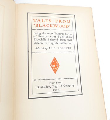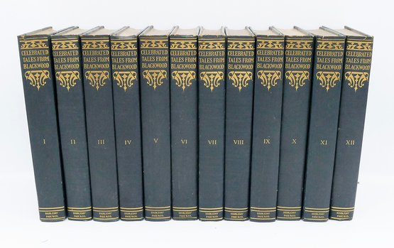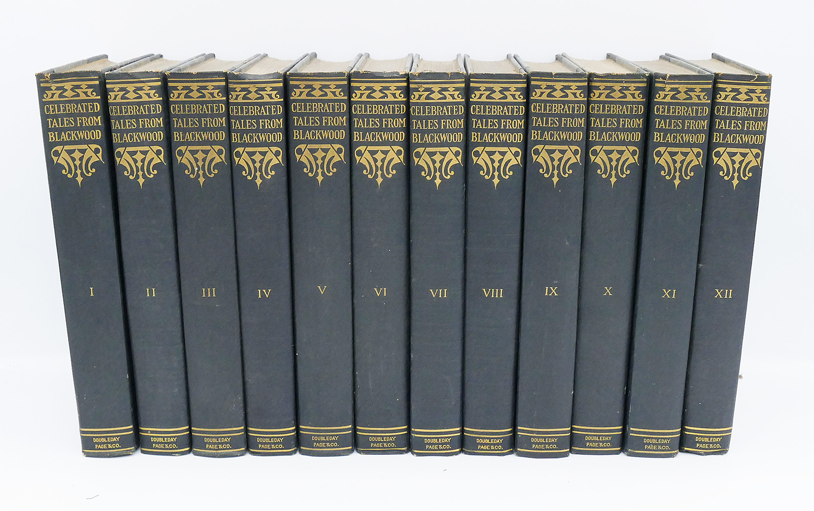 Celebrated Tales From Blackwood (Doubleday Page & Co). First Edition. Complete 12 volume set. Half black cloth over marbled boards; gilt particulars to spine. Top edge gilt, deckled edges. Volume I (1903). In Very Good Condition. Rare complete set. 7.75" x 5.25 Book Size.