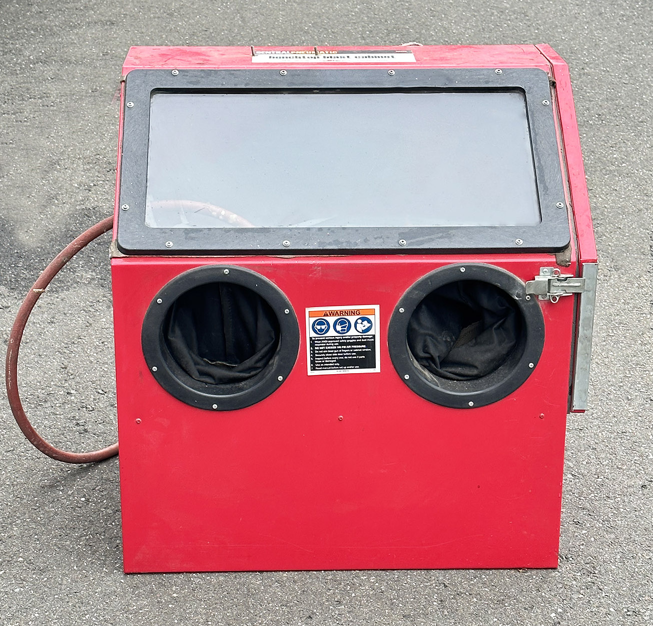 Central Pneumatic Benchtop Blast Cabinet. In Red. 16.5" high work area. Original cost was approximately $250.