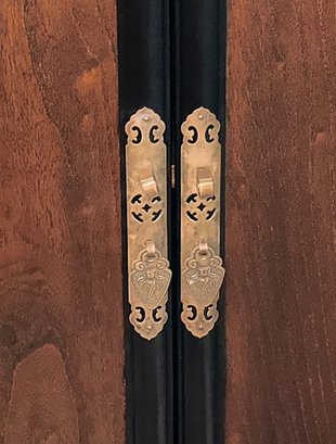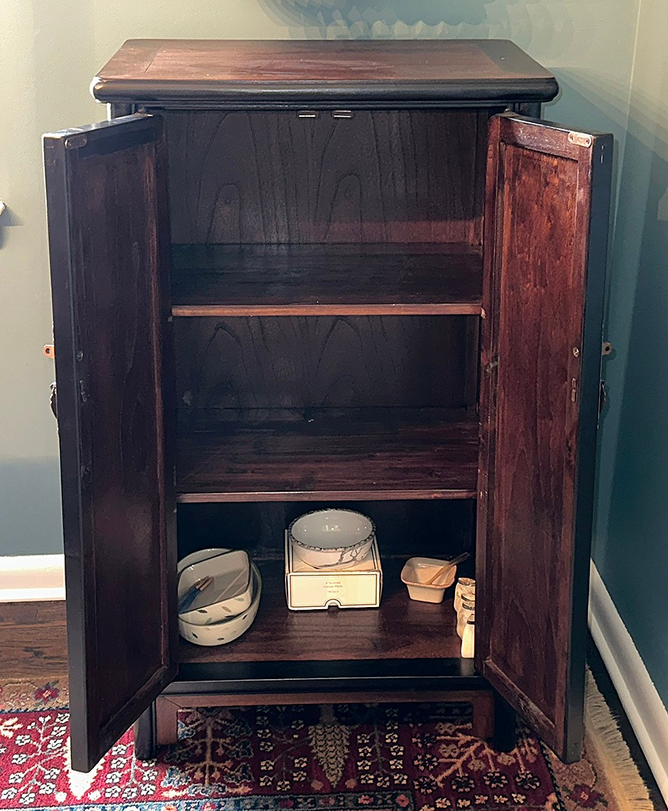 Chinese Qing Dynasty Style Wood Scholars Cabinet. Three shelves. 42" tall, 23" wide, 16" deep. Contents not included.