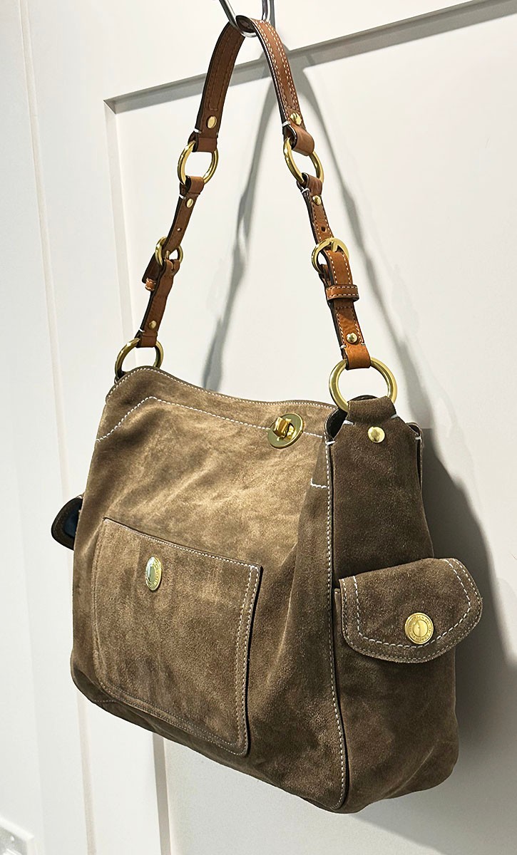 Coach Suede Hobo Bag. In Very Good Condition. 12" x 4" x 12" (bag), 10" drop. Includes the original card. Very Clean.