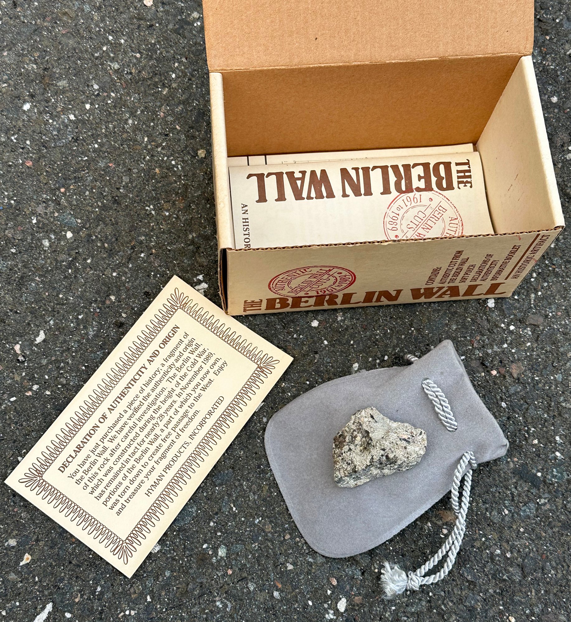 Collectible Authentic Piece Of The Berlin Wall. In the box with a Certificate Of Authenticity. Excellent Condition
