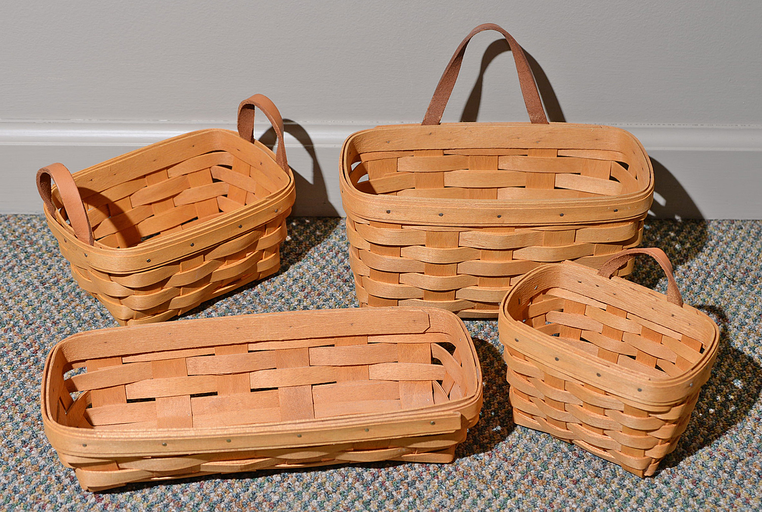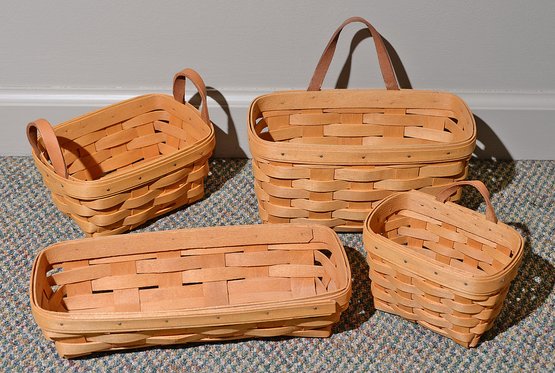 Collection Of 4 Handmade Longaberger Baskets From 1995-1997. Signedin pen on the bottom. Ranging in approximate lengths from 6" to 10.5". All appear to be in Excellent Condition.