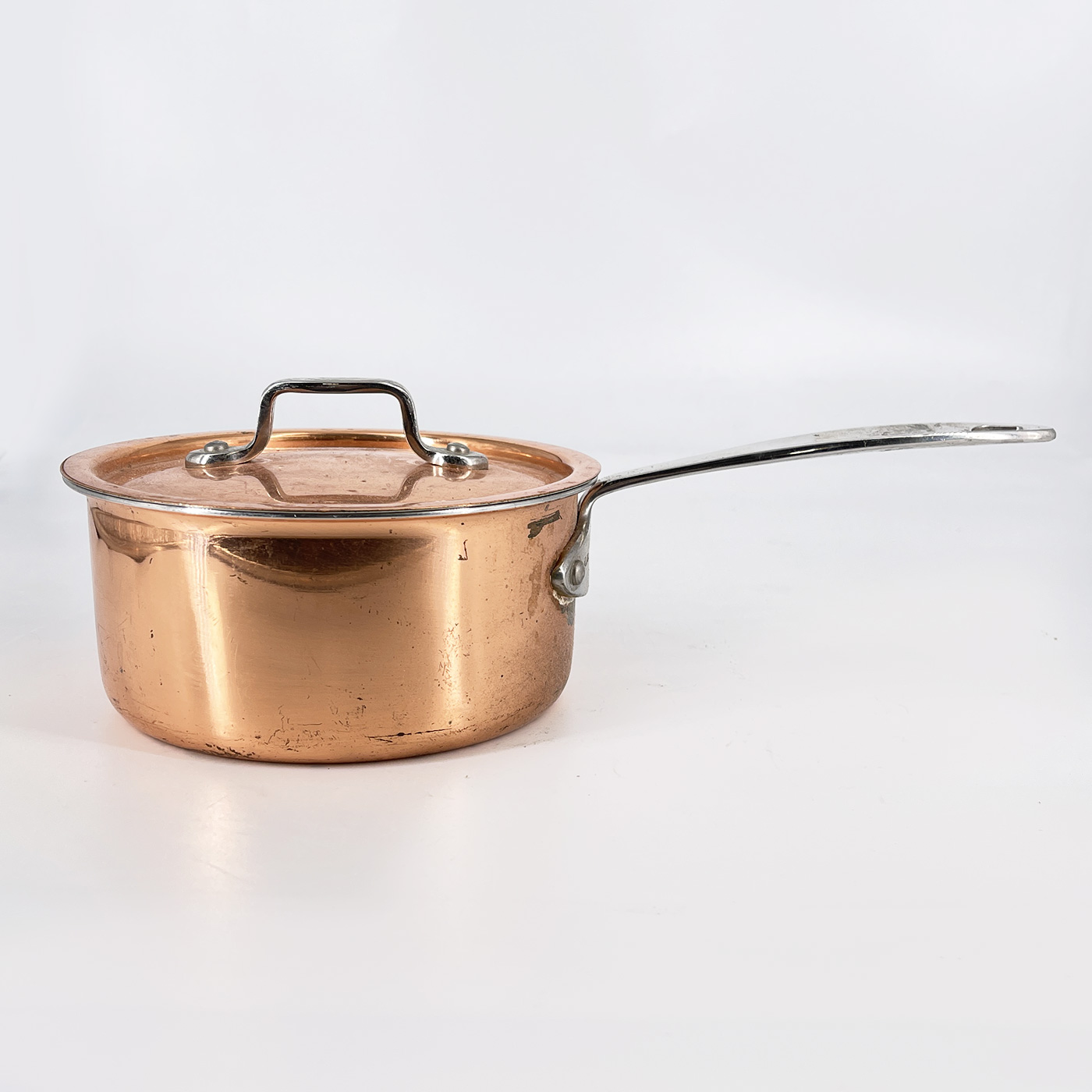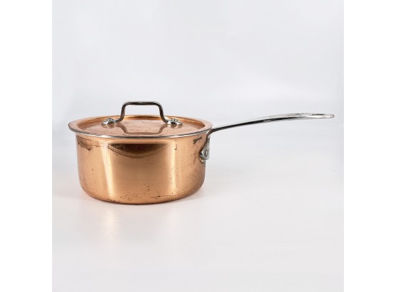 Copper Lagostina Saucepan With Lid. In good condition with some wear from age and use.