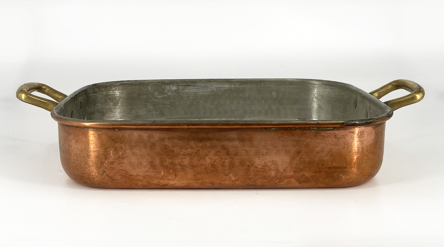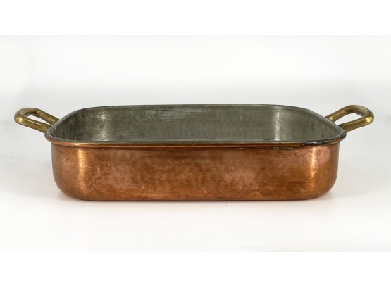 Copper Lasagna Pan With Handles. Marked "Made in Italy". In good condition with some wear from age and use.