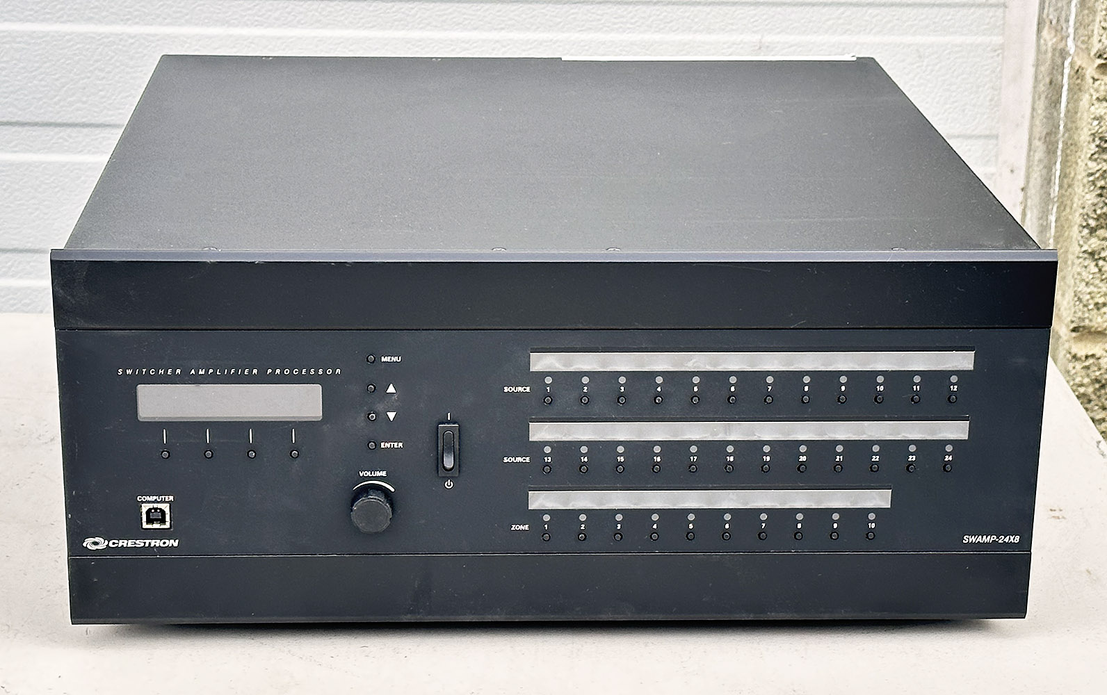 Crestron Swamp 24x8 Whole House Audio System. Recently professionally removed from a working home system. 24x10 stereo matrix switcher, 8-channel stereo DSP, 8-channel stereo power amplifier. A fully-scalable audio distribution system that delivers high-output audiophile sound quality to every room with reduced cabling, low power consumption, advanced DSP, and integrator-friendly setup. New units now sell for around $7000.