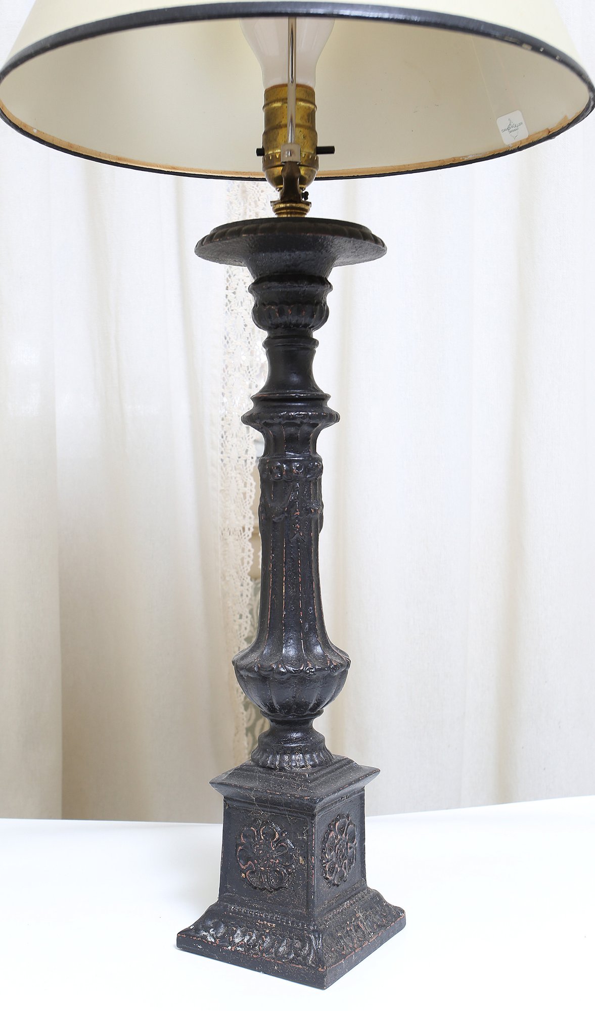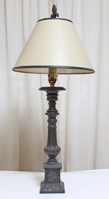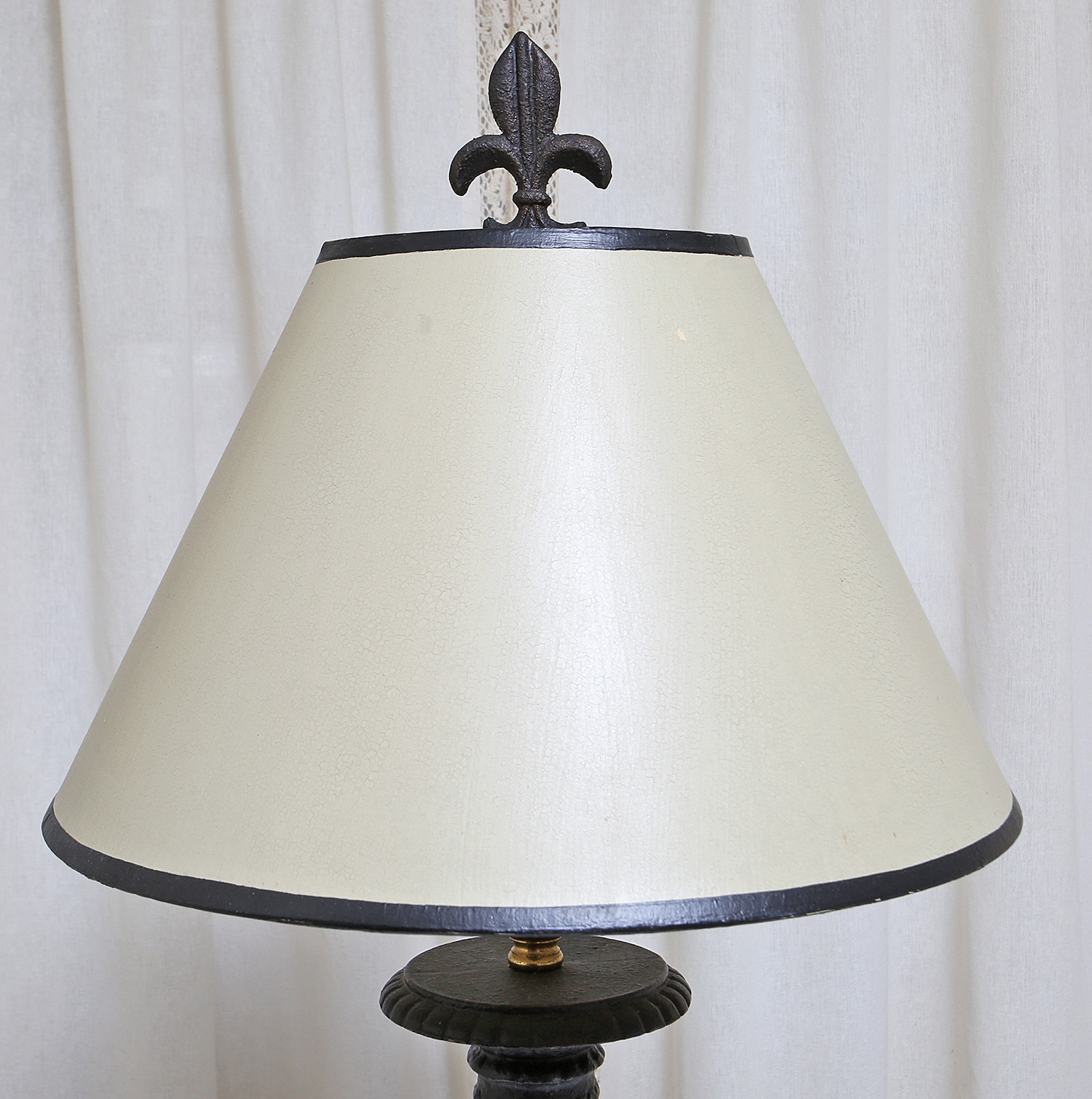 David Fuller Design Table Lamp. With Fleur De Lis finial. In good condition. 32" tall, 14" diameter shade.