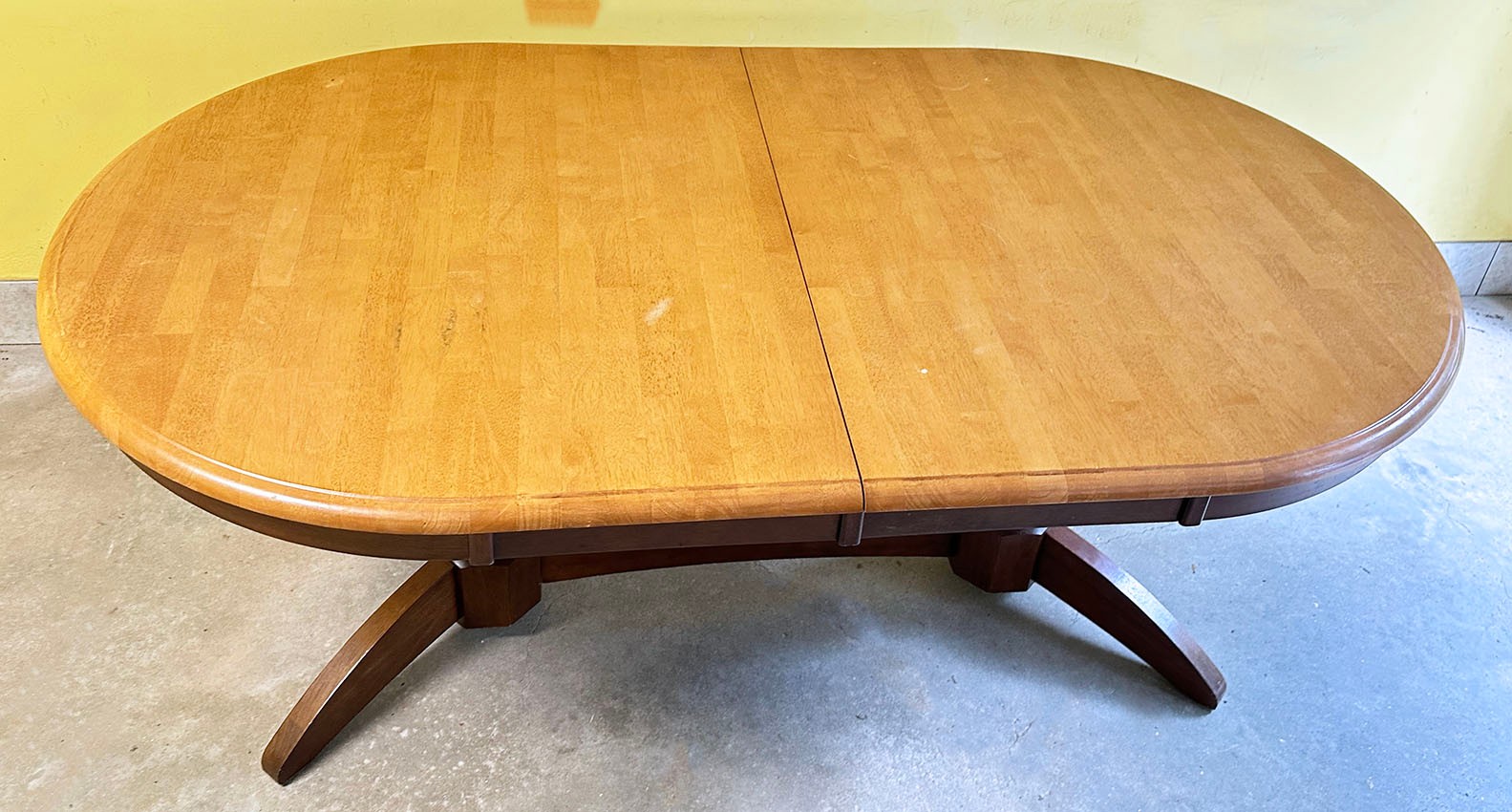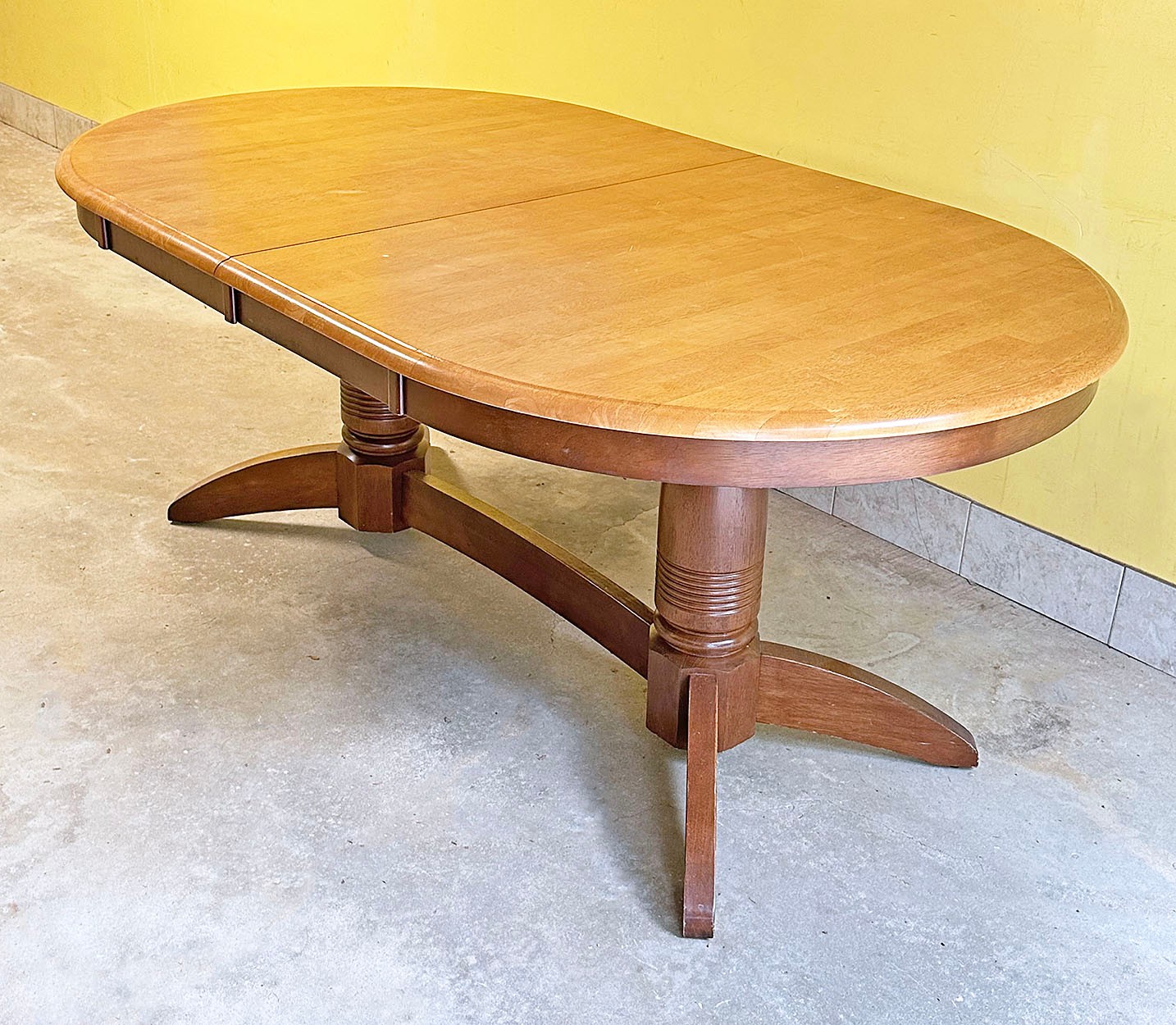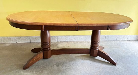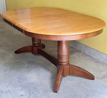 Double Pedestal Traditional Wooden Dining Table. In good condition with some light wear/marks. 72" x 42" 30.5"h