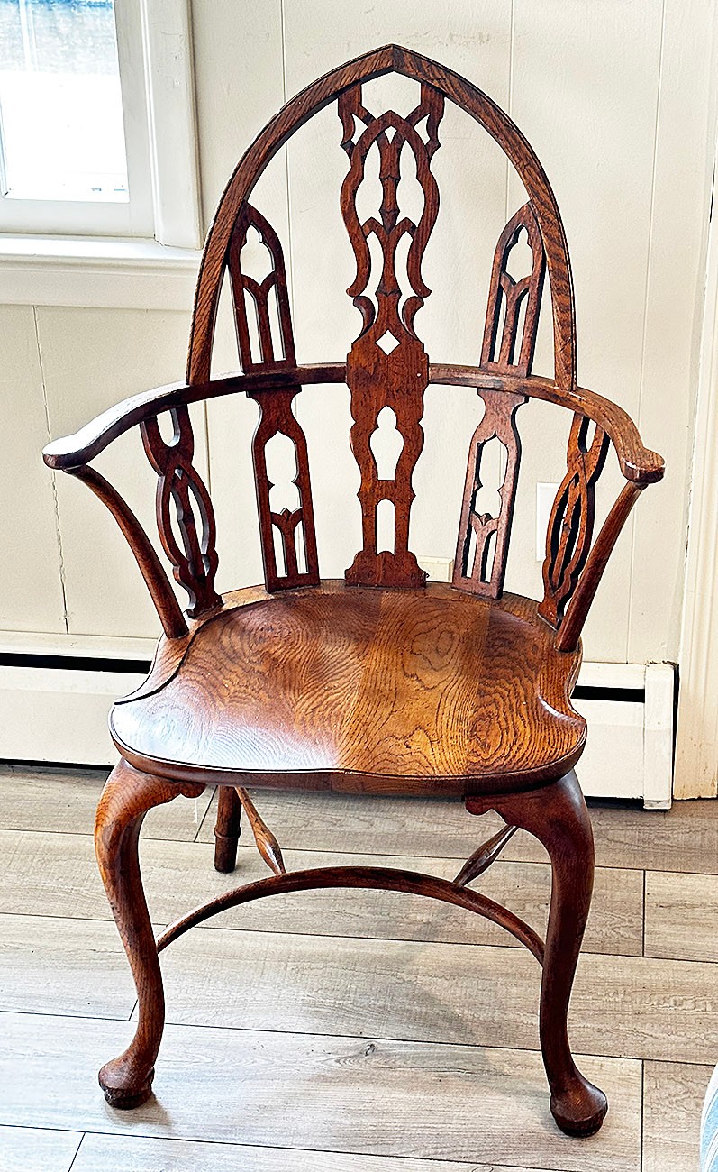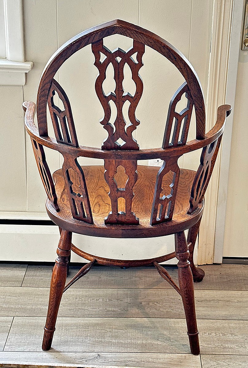 Early 20th Century Gothic Windsor Chair. In Excellent Condition. 26" x 25" x 43"h