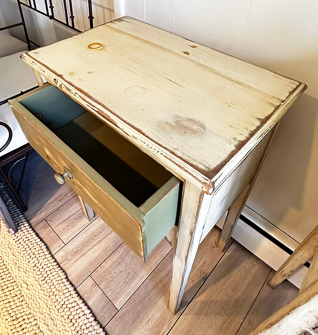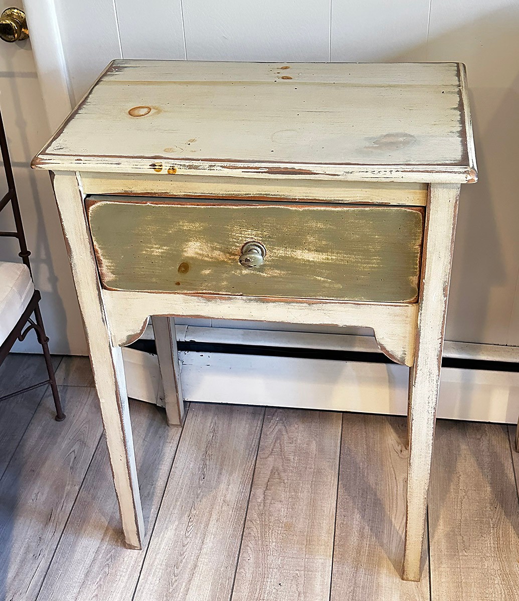 Eddy West Distressed Side Table With Drawer. In Good Condition. 22"w x 32"h