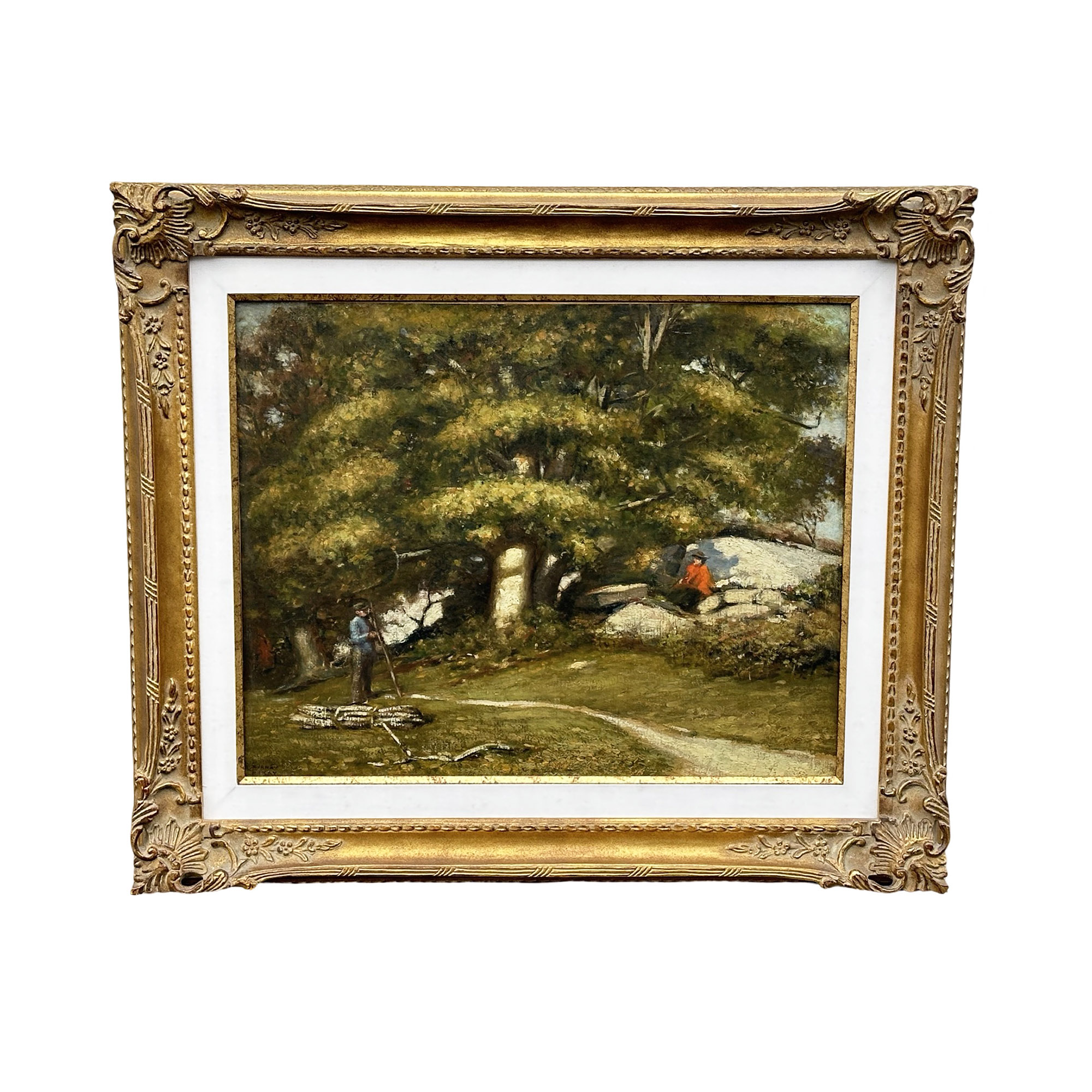 Edwin Murray MacKay (American, 1869-1926) Original Oil On Canvas "Stopping For A Chat". Signed lower left. Estate stamp in back on the frame and canvas. In Very Good Condition. Measurements: 35.5" x 40.5" (frame) / 24" x 30" (canvas). ESTIMATE: $1200-$1500.