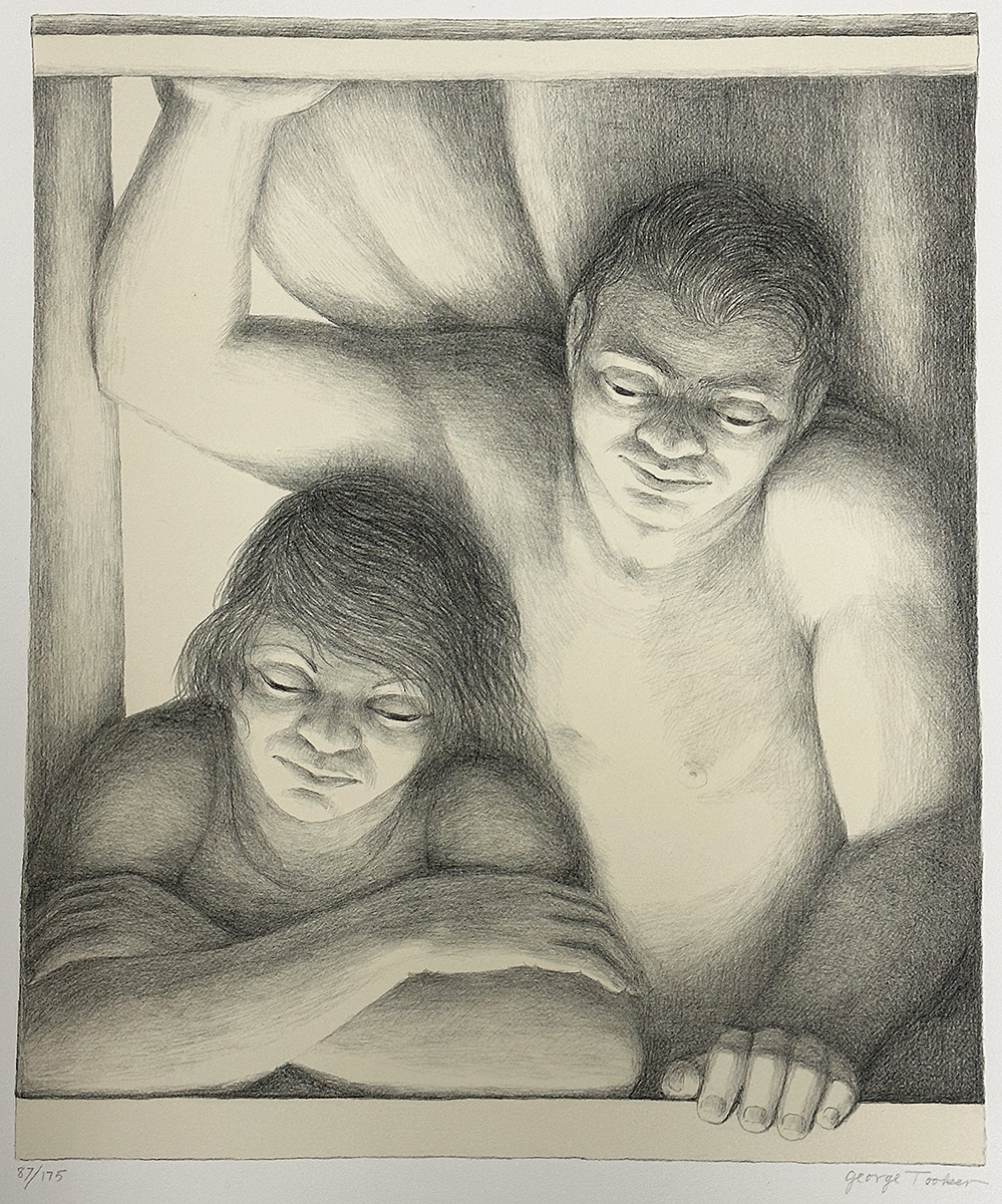 George Tooker Lithograph "The Window" (1994). Signed and numbered in pencil, lower margin. Excellent Condition. Edition Size: 175. Never Framed. Paper Size: 25.5" x 30"