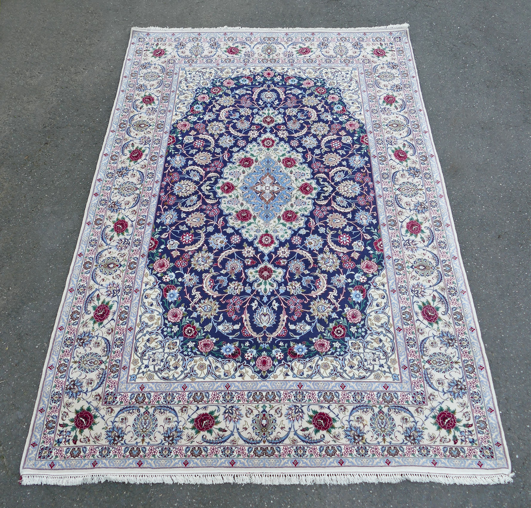 Persian Isfahan 6'8" x 10'3" Hand Knotted Rug. Very High Quality. Wool with a cotton or silk base. 400-440 KPSI. Purchased in Italy approximately 20 years ago for $10,000 USD. In Very Good Condition. Beautiful Rug.