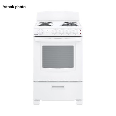 Hotpoint 24" Free-Standing Front-Control Electric Range. Model #RAS300DMWW. In White, New and Never Used In Box. The box was opened on top by the owners for initial inspection but the unit has never been removed and still has the wrapping. The new cost at Lowes was $849.