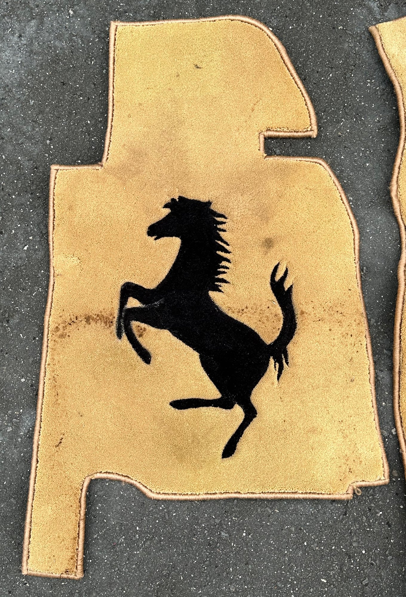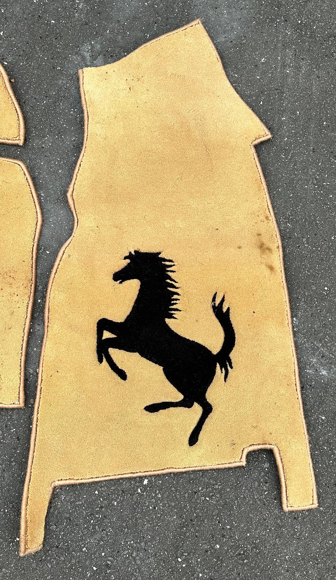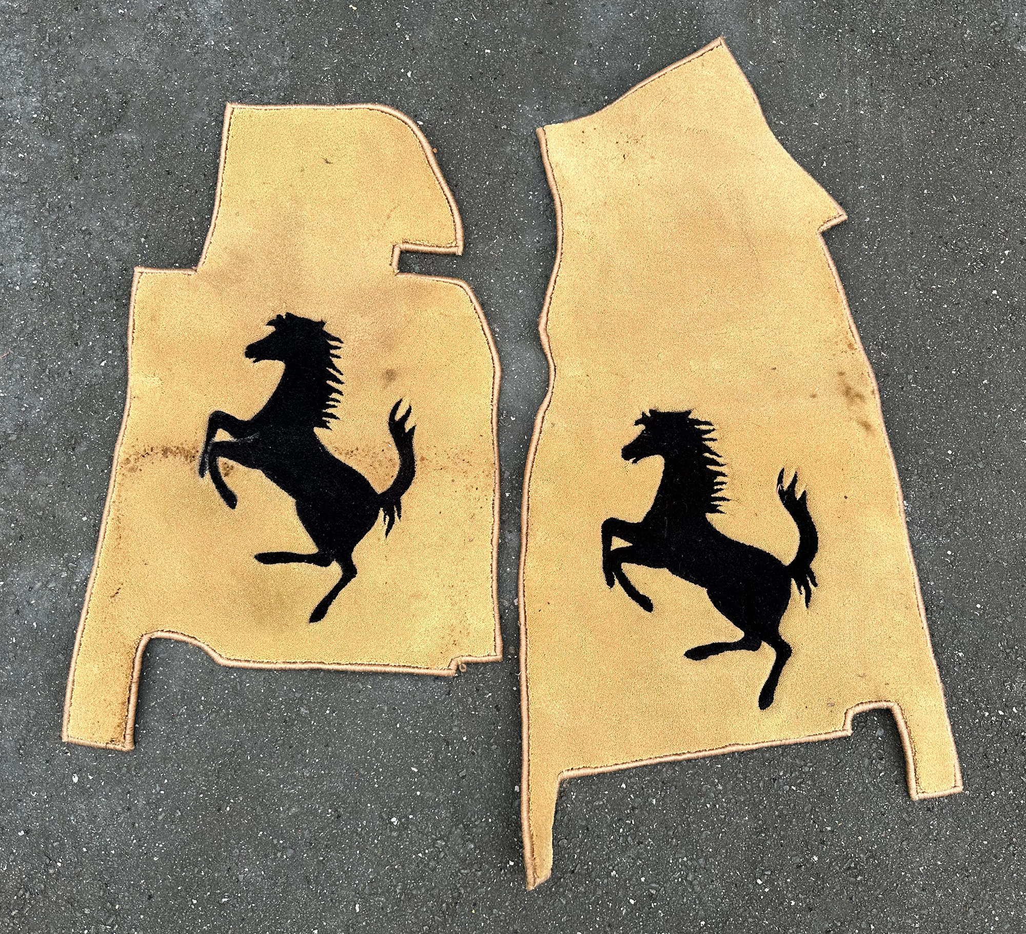 Ferrari Automobile Floor Mats. Includes the Driver and Passenger side. The owner owned many Ferraris over the years; we are unsure which model these mats fit. They have some dirt and should look nicer with a good cleaning.