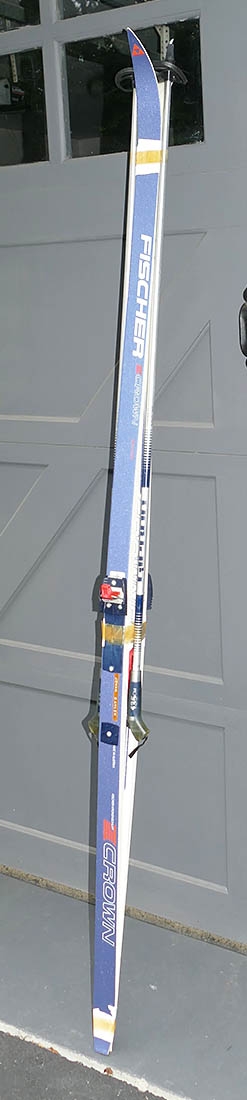 Fischer Crown Cross-Country Skis (200cm). With Salomon bindings and Gipron 135cm Poles. Untested but appears to be in good condition.