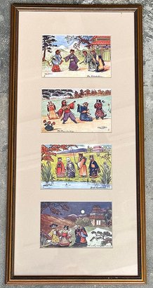 Framed Collection Of 4 Vintage Louis Wain Cat Themed Postcards. In Excellent Condition; Professionally framed and matted. Framed Dimensions: 10.5" x 22"