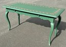 French Country Hand-Painted Dining Table. In a nice rustic finish. Includes 2 drawers on one side. In Very Good Condition. 58"w x 26"d x 31"h