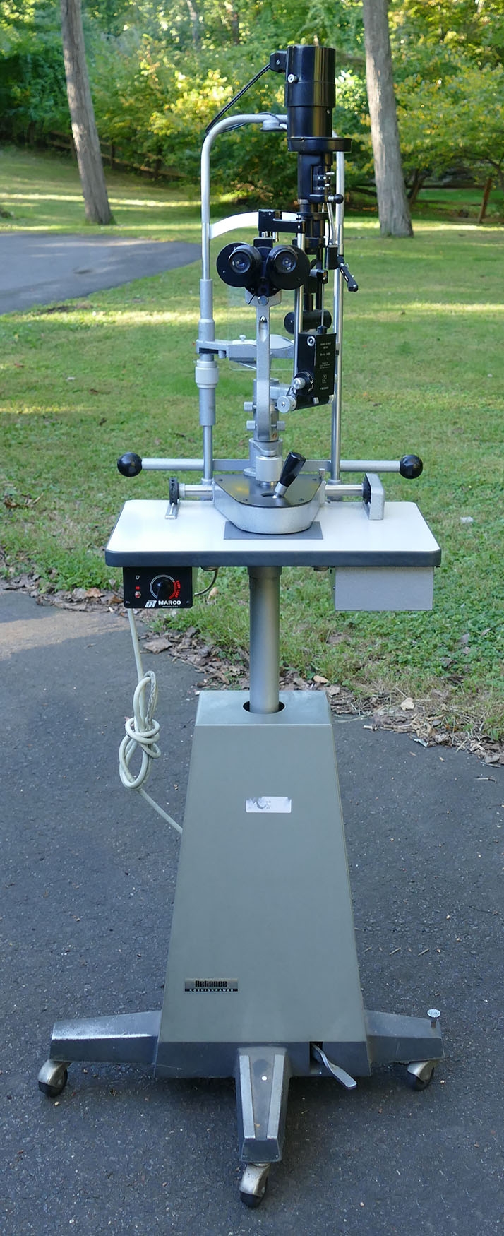 Haag-Streit / Marco Slit Lamp - Eye Examination Device. On a Reliance Koenigkramer stand. Untested - AS-IS. May need a new power cord.