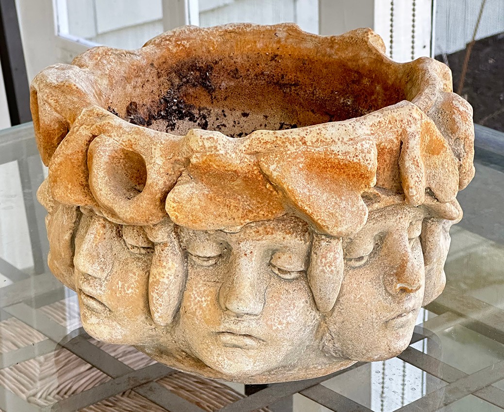 Hayes Parker Titania Cast Stone Garden Planter - 7 Faces. Great piece. 10" diameter, 7.5" tall.