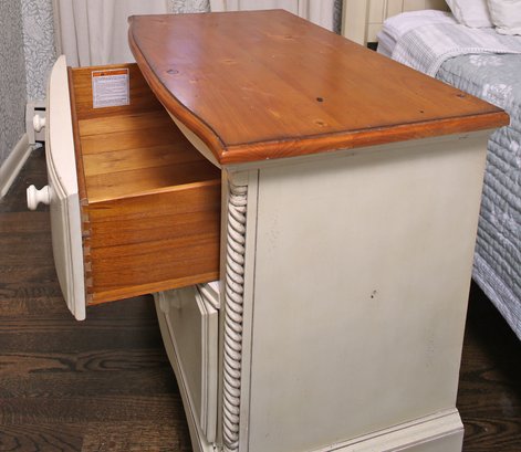 Hillsdale Furniture Wooden Nightstand. With a nice country distressed finish. Matches with a double dresser in this auction. In Good Condition. Approximately 30"w x 18.5"d x 30"h