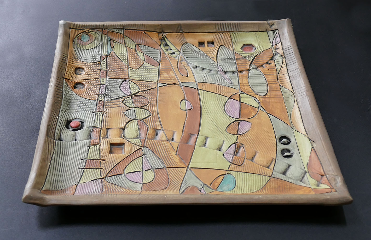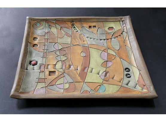 Janine Sopp Art Pottery - Earthenware Serving Plate. From her Time & Space collection. Signed on the bottom. In Very Good Condition.