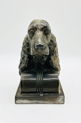 Jennings Brothers J.B 1029 Cast Toned Metal Cocker Spaniel Single Bookend. Circa 1930's. Grey toned metal finish with some wear patina. Stamped on the lower back "J.B 1029". Measures 5" H x 3" W x 3" D.