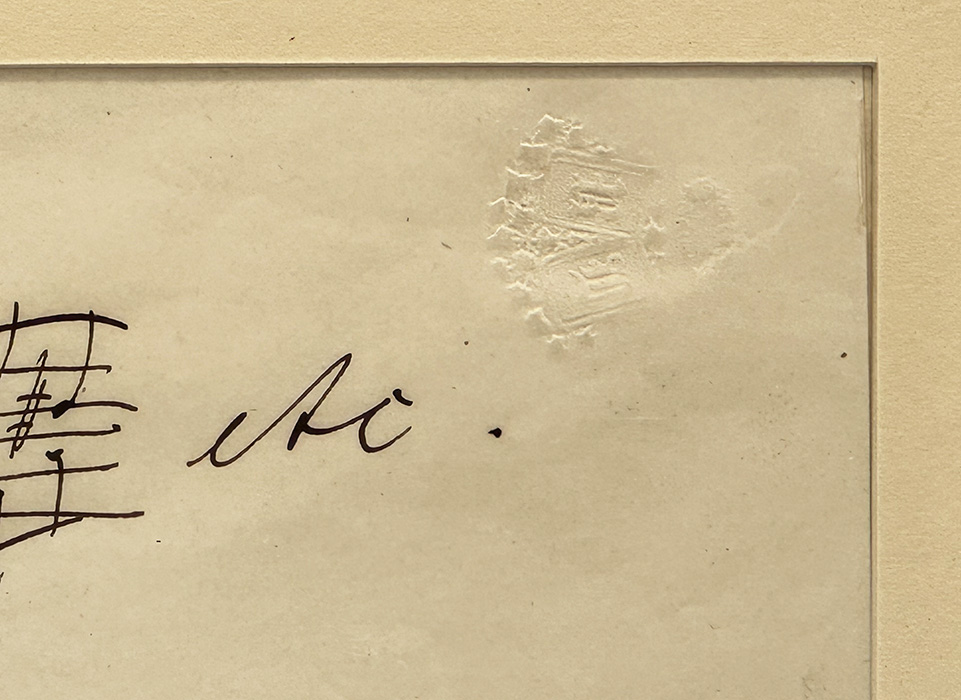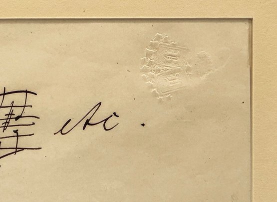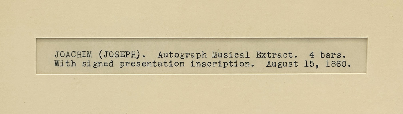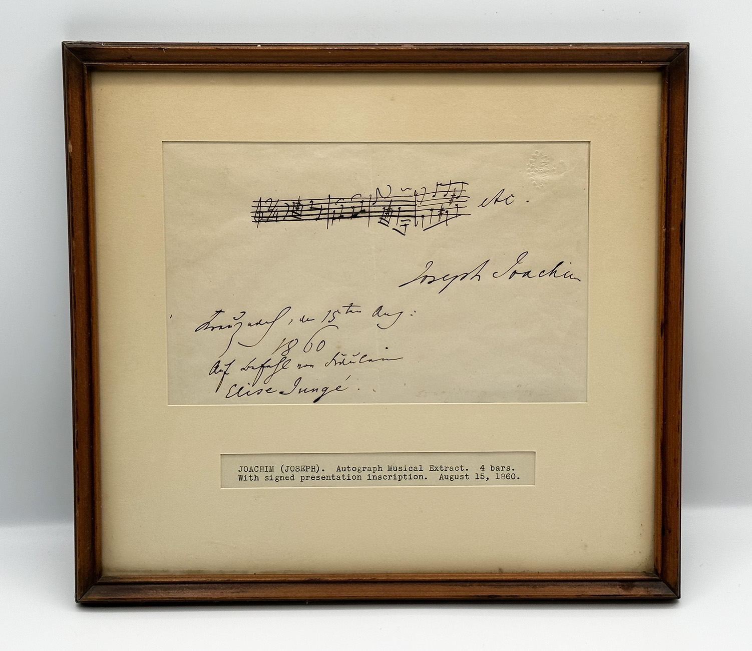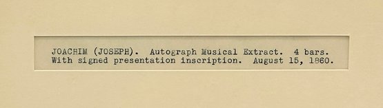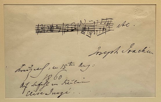 Hand Written Musical Autograph in Pen, dated 1860, from Joachim Joseph (1831-1907) Hungarian Violinist and Composer. In an antique frame. On embossed paper. In Very Good/Excellent Condition. Great Example.