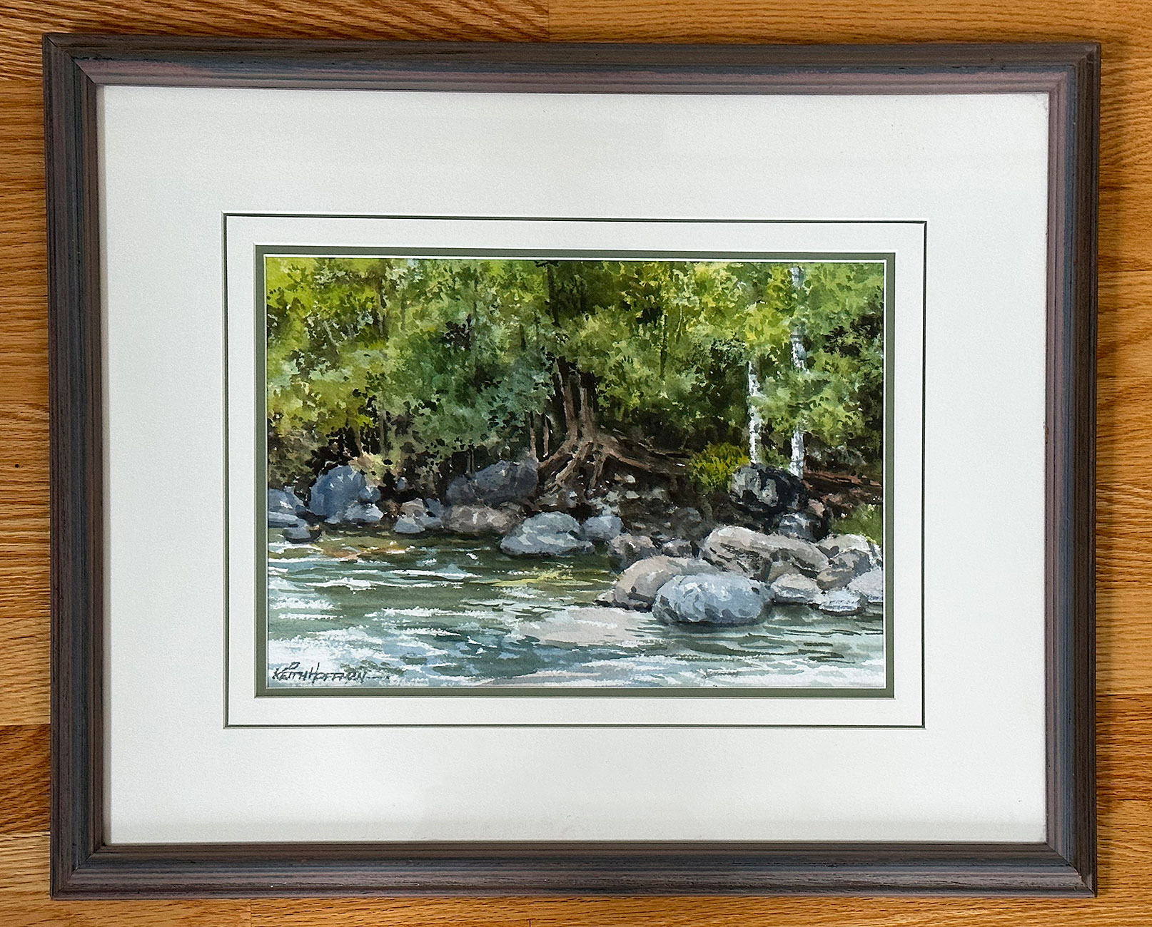 Keith Hoffman (VT, 1933-2016) Original Landscape Watercolor. Nicely framed and double matted. In Very Good Condition. 21" x 17" (frame)