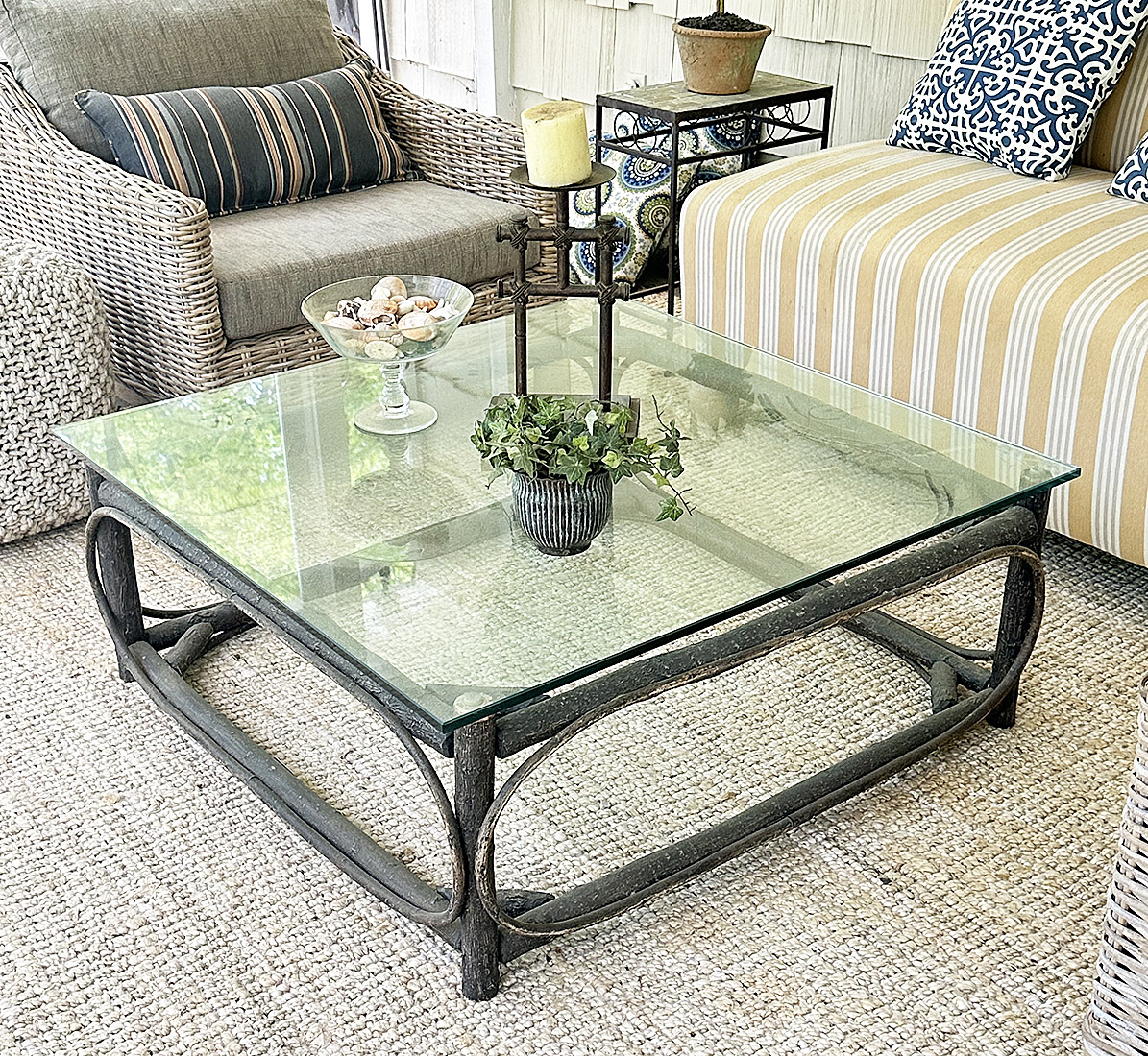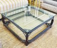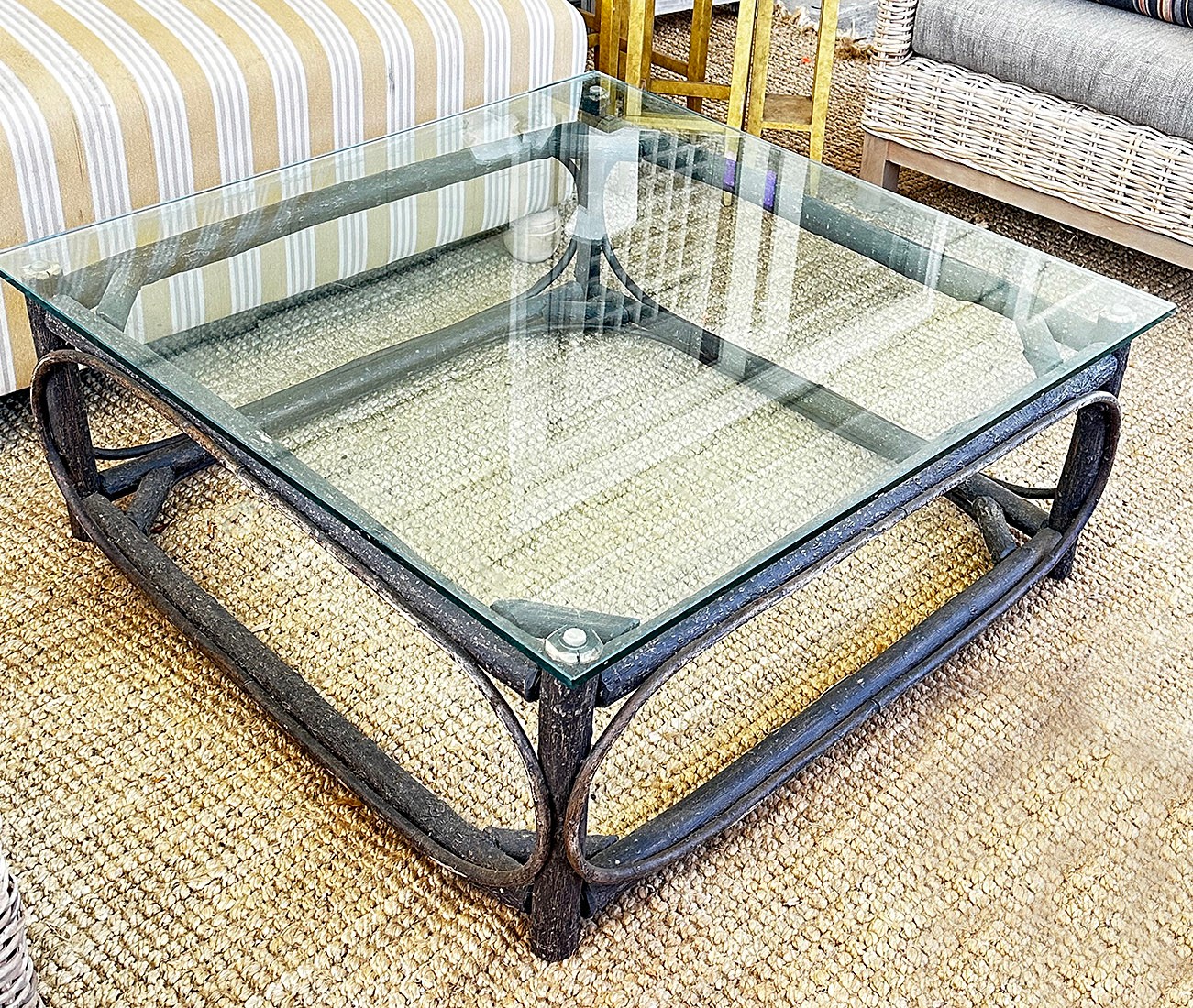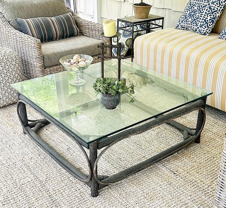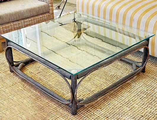 La Lune Collection Handcrafted Rustic Wooden Coffee Table With Glass Top ($2000). In good condition. 55" x 37" x 15"H