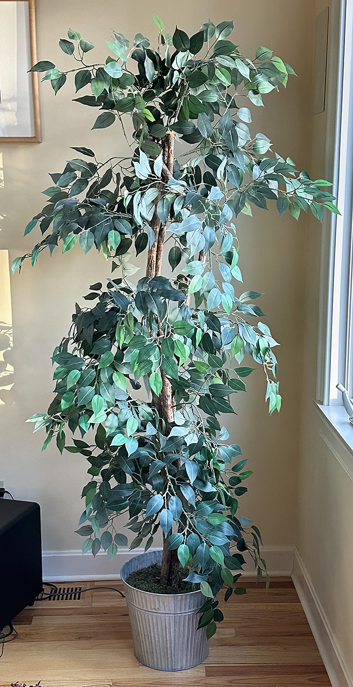 Large 78" Faux Tree In A Galvanized Pot. In Excellent Condition.