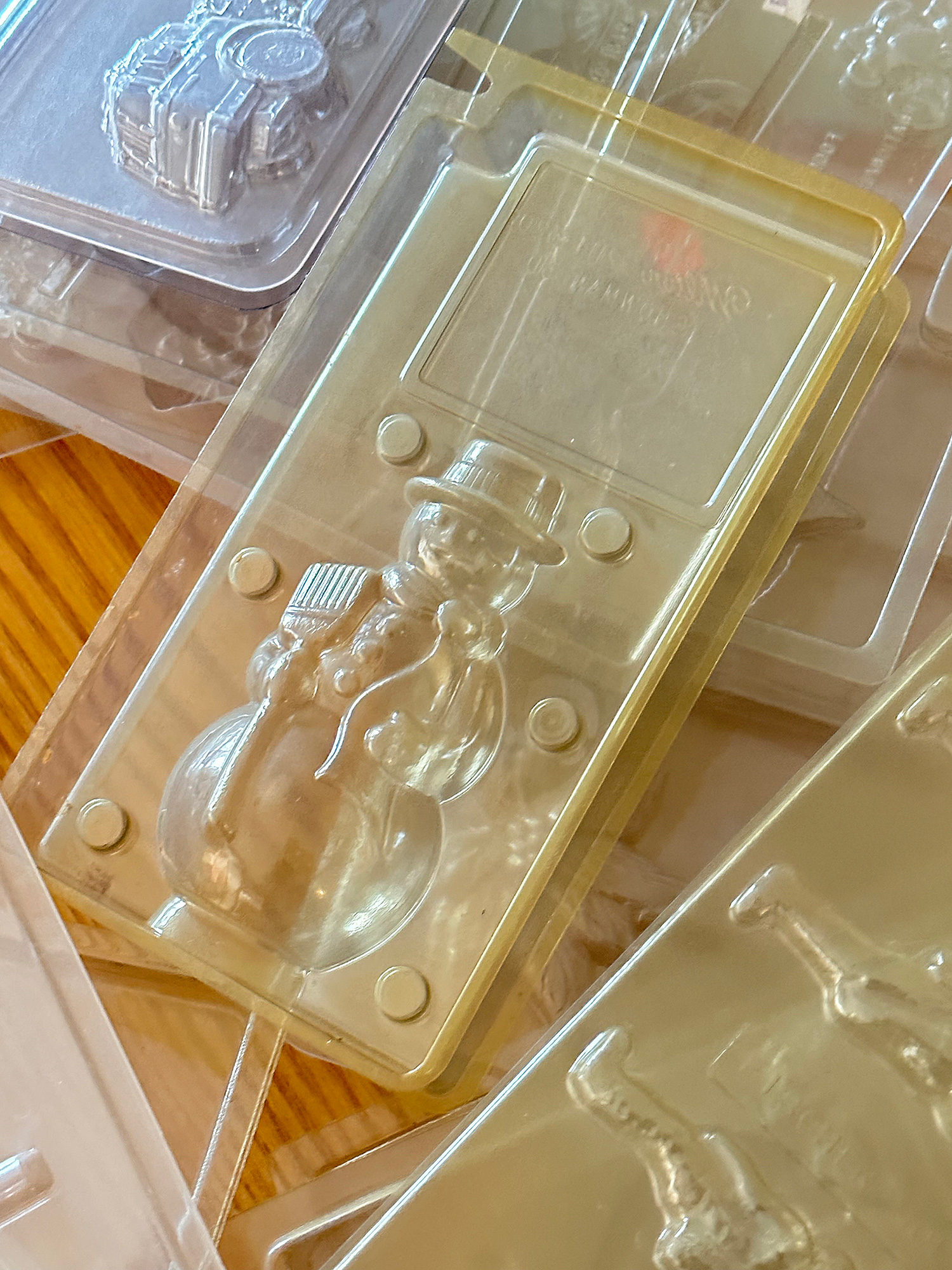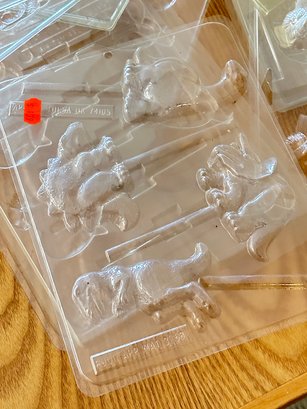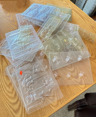 Large Lot of plastic Chocolate / Candy molds. Different designs (cars, dinosaurs, xmas, etc). In Good Condition.