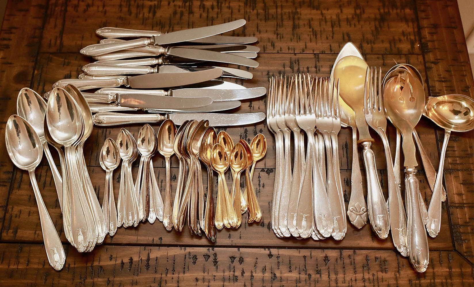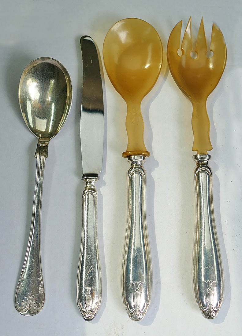 Large Silverware Flatware Lot. Over 60 pieces of mostly silverplate. Brands and marks include Guldsmedsaktiebolag Stockholm and Prima NS Alp. In Good overall condition.