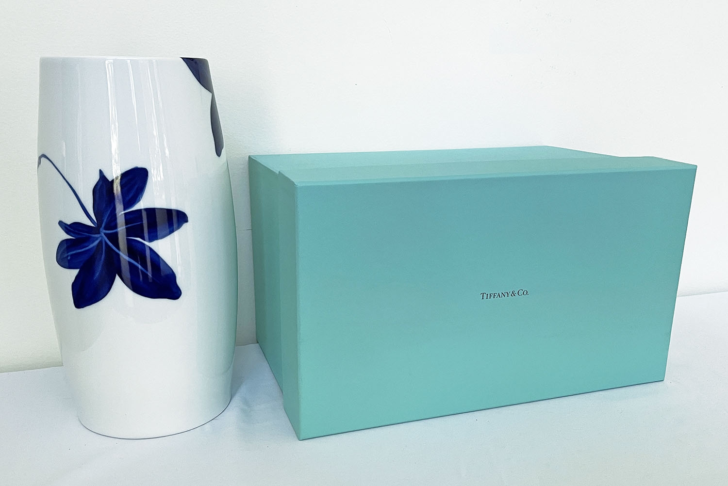 Tiffany & Co. "Tiffany Vines" Porcelain Vase. In Excellent, Like New Condition - Never Used In The Original Box. 13" Tall. Made in Japan. Purchased in 2015. Would make an excellent holiday gift.